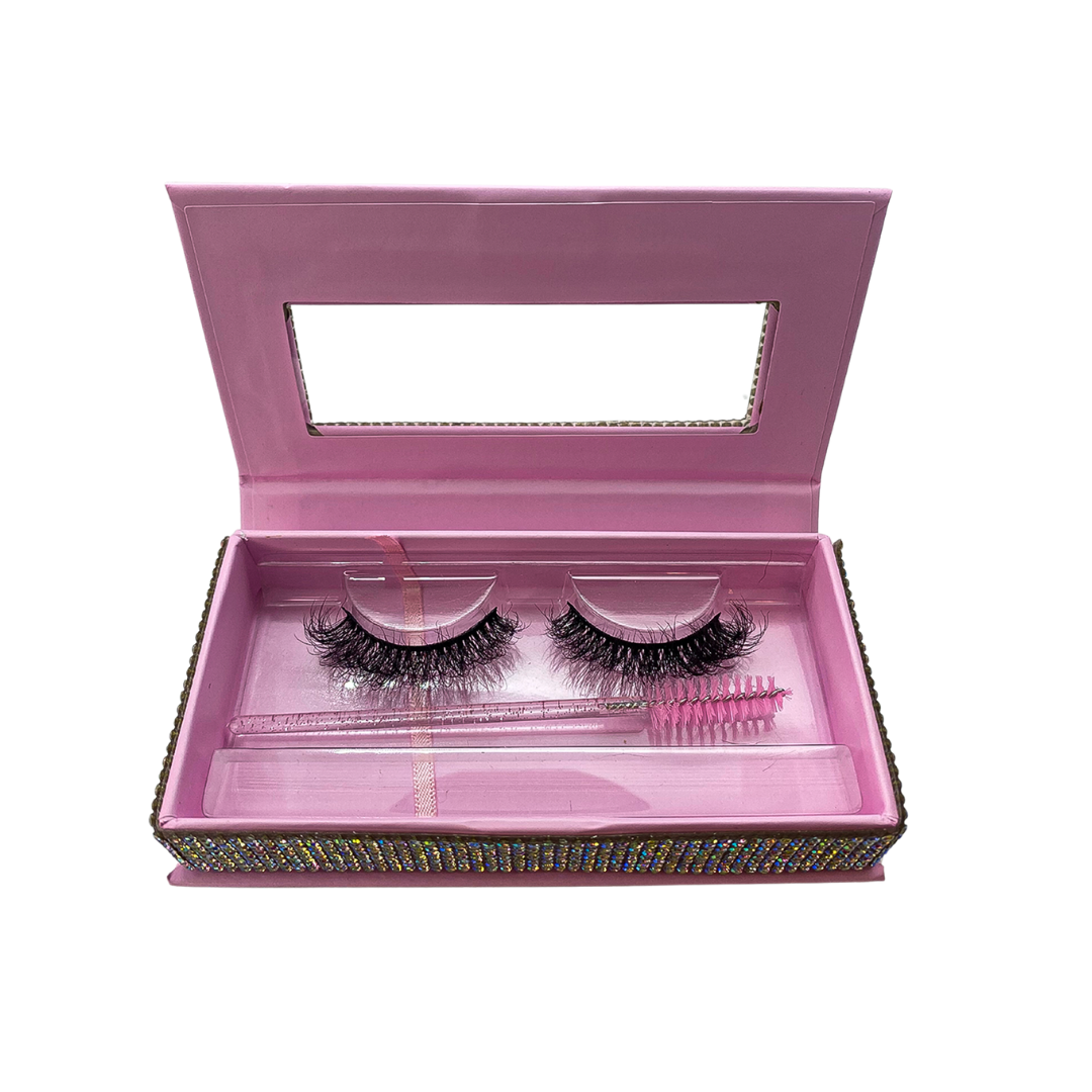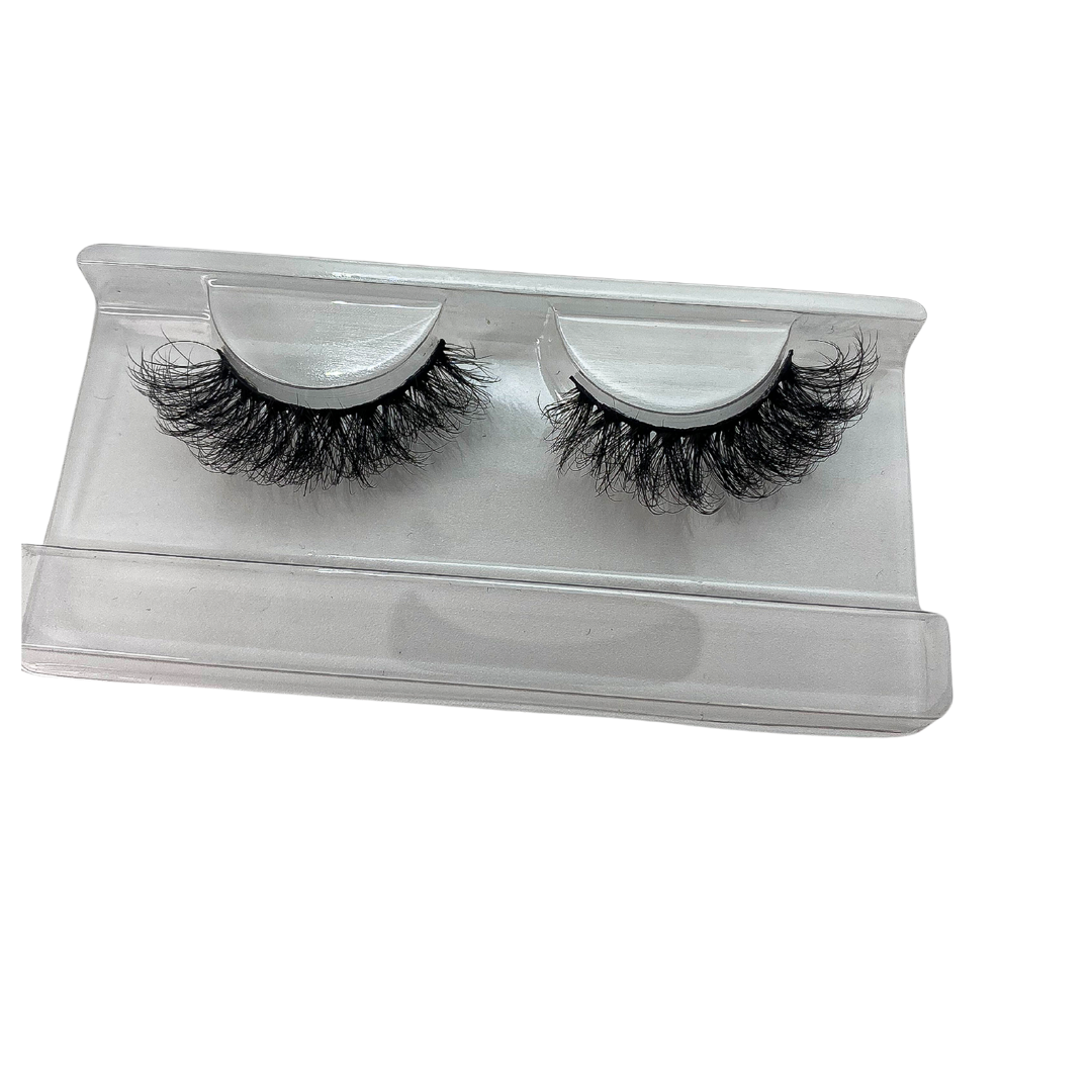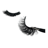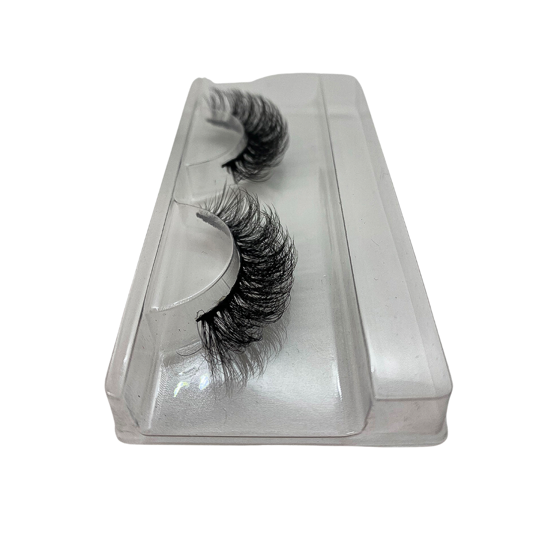 The eyelashes are slightly angled and have varying lengths and thicknesses, characteristic of false lashes designed for a fuller, more dramatic look. Individual lash hairs are distinct, and the texture of the fibers appears soft and delicate, although not overly fine.