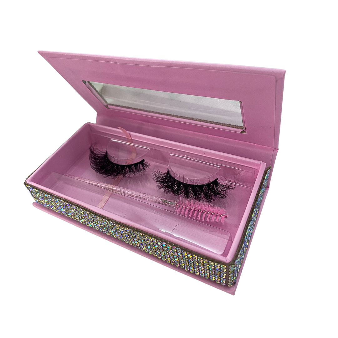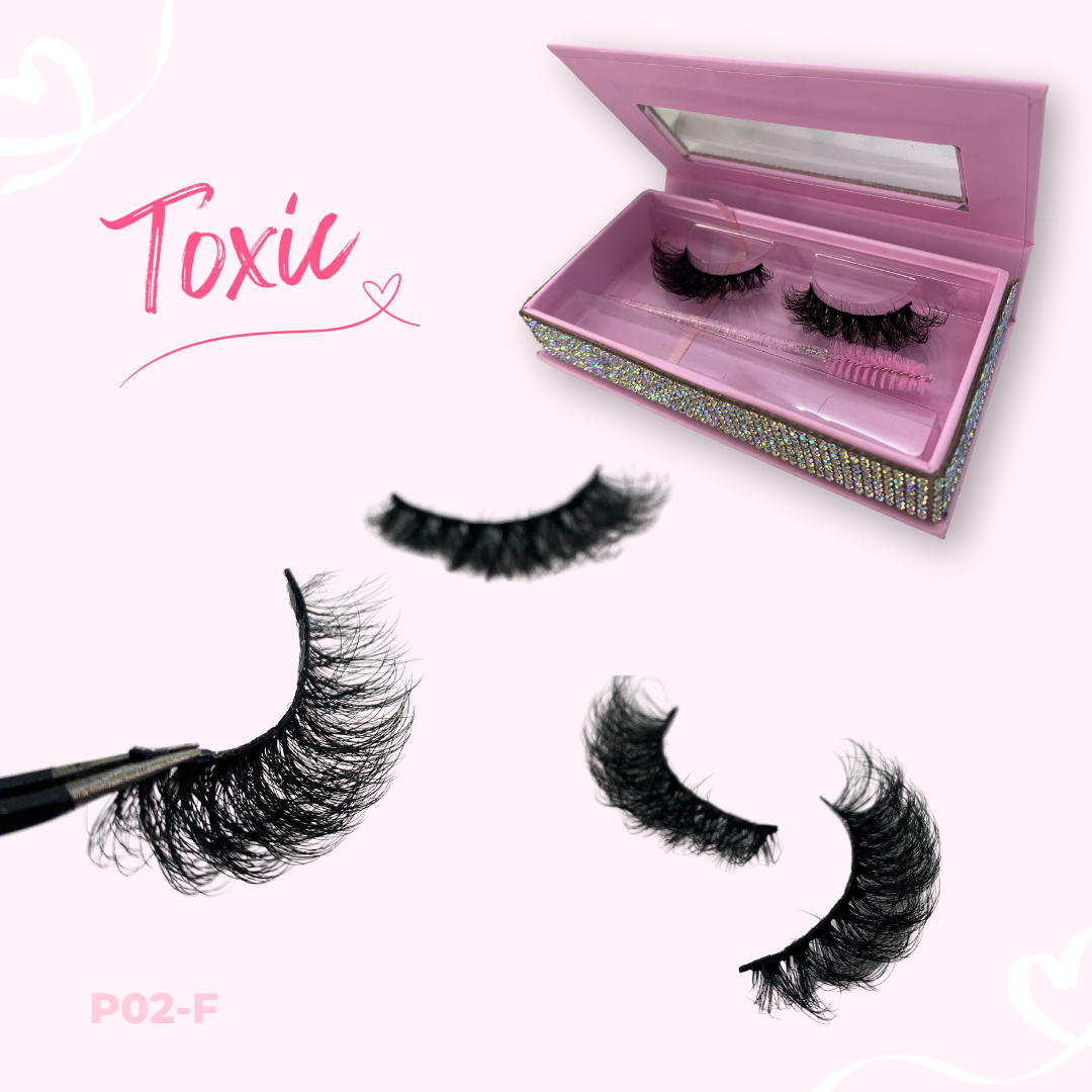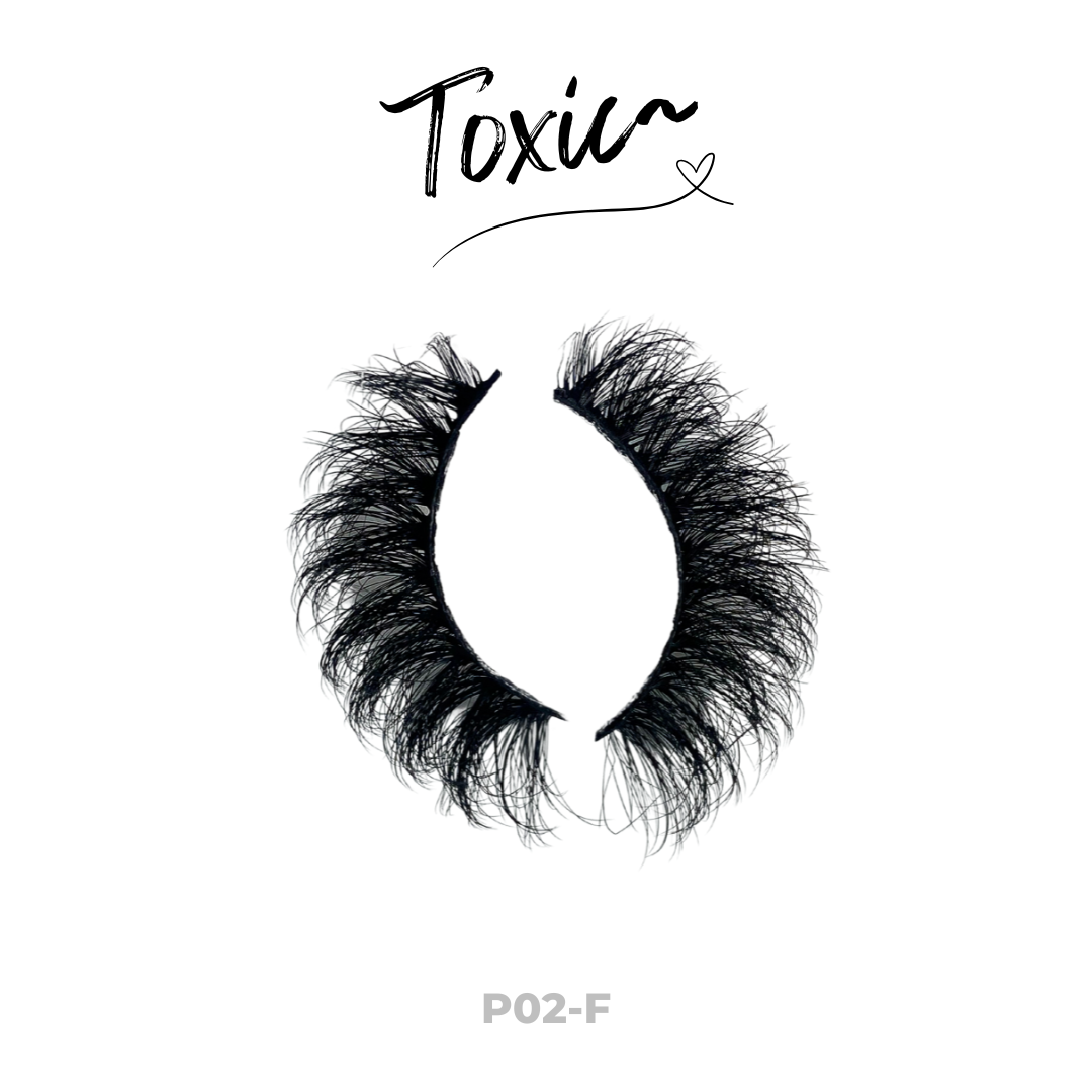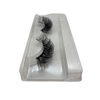 The eyelashes are slightly angled and have varying lengths and thicknesses, characteristic of false lashes designed for a fuller, more dramatic look. Individual lash hairs are distinct, and the texture of the fibers appears soft and delicate, although not overly fine.