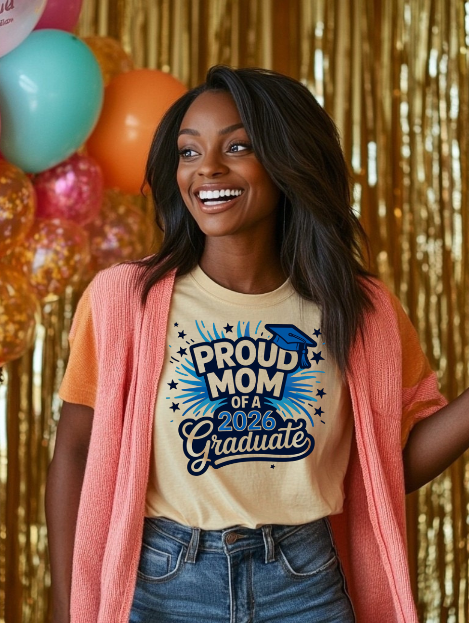 Celebrate graduation season in style with this Proud Mom of a 2026 Graduate design! šāØ Featuring bold blue tones, fireworks, and a graduation cap, this design is perfect for shirts, tote bags, mugs, and more. A fun way for proud moms to cheer on their graduate in 2026!