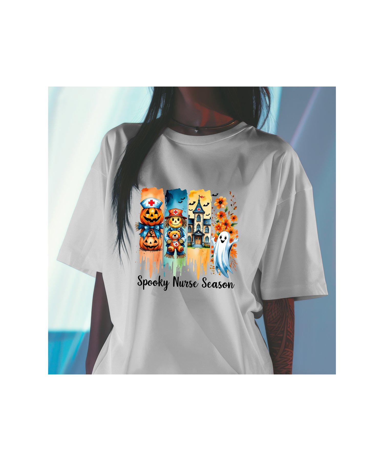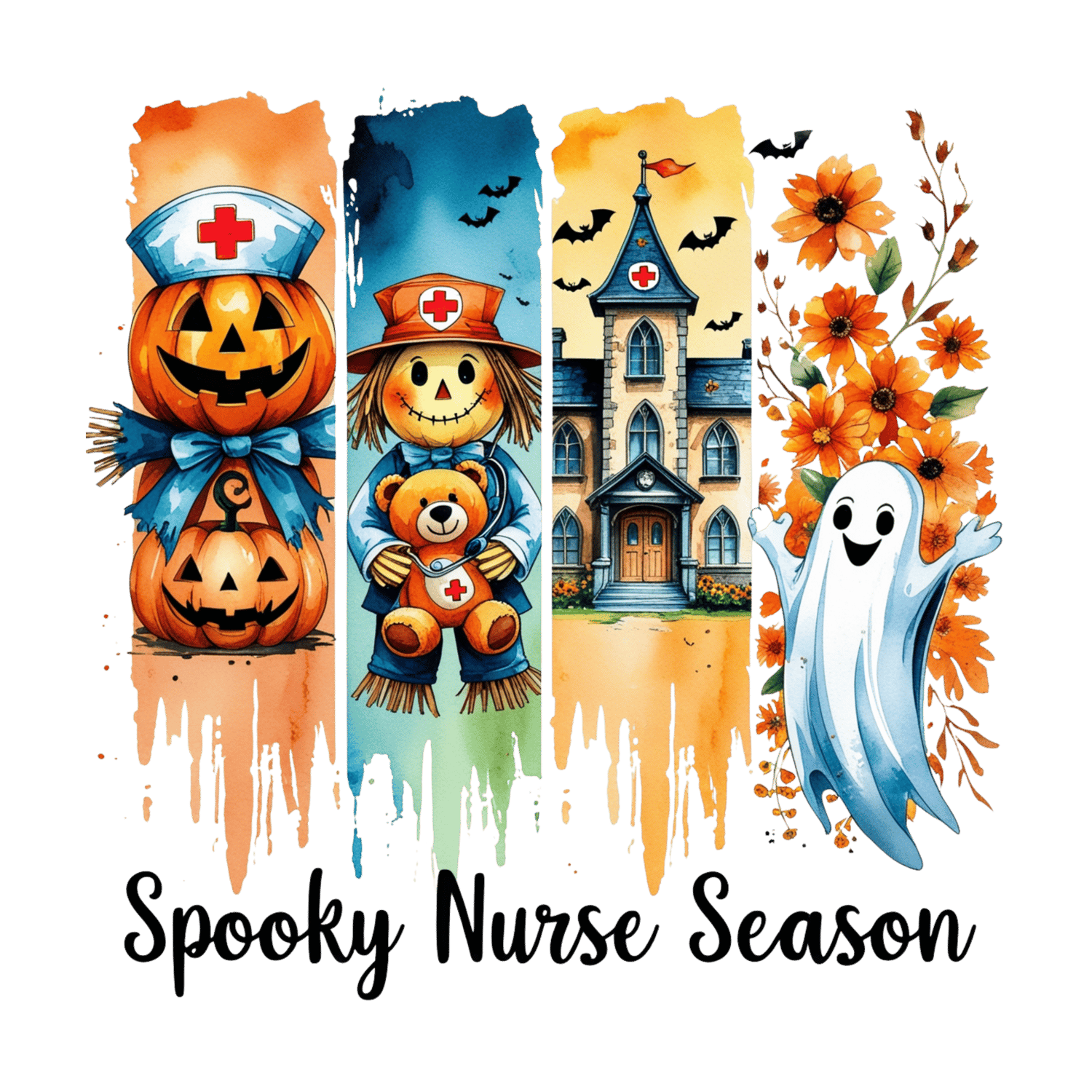 “Spooky Nurse Season” in a fun, bold font