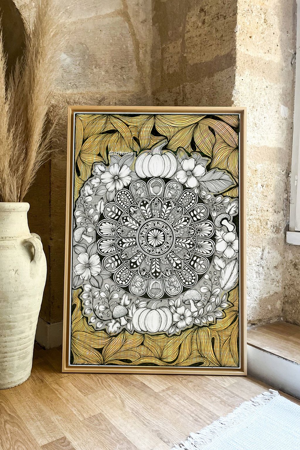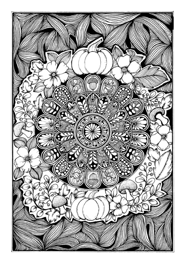 Get the full Autumn Mandala experience! This premium bundle includes multiple print sizes plus a bonus coloring PDF for personal use.