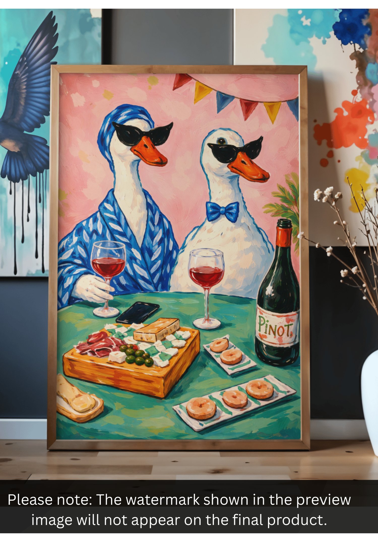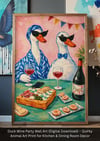 Duck Wine Party Wall Art (Digital Download) – Quirky Animal Art Print for Kitchen & Dining Room Decor