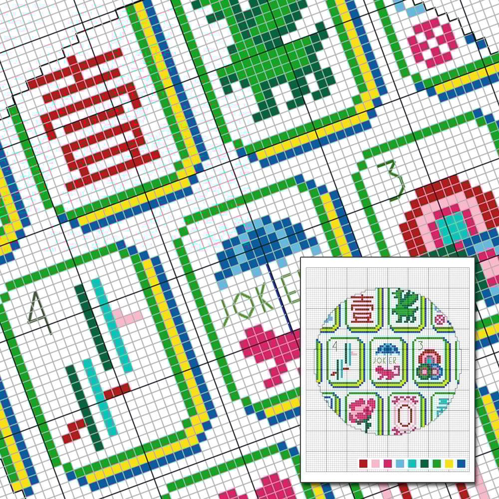 Modern Mahjong Tiles 4" Round Ornament Stitch Pattern