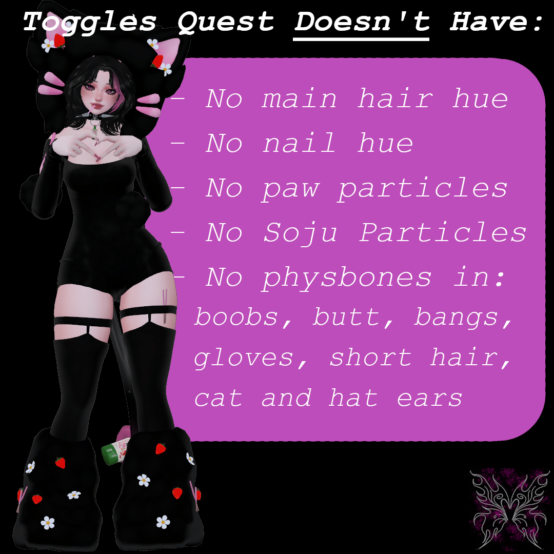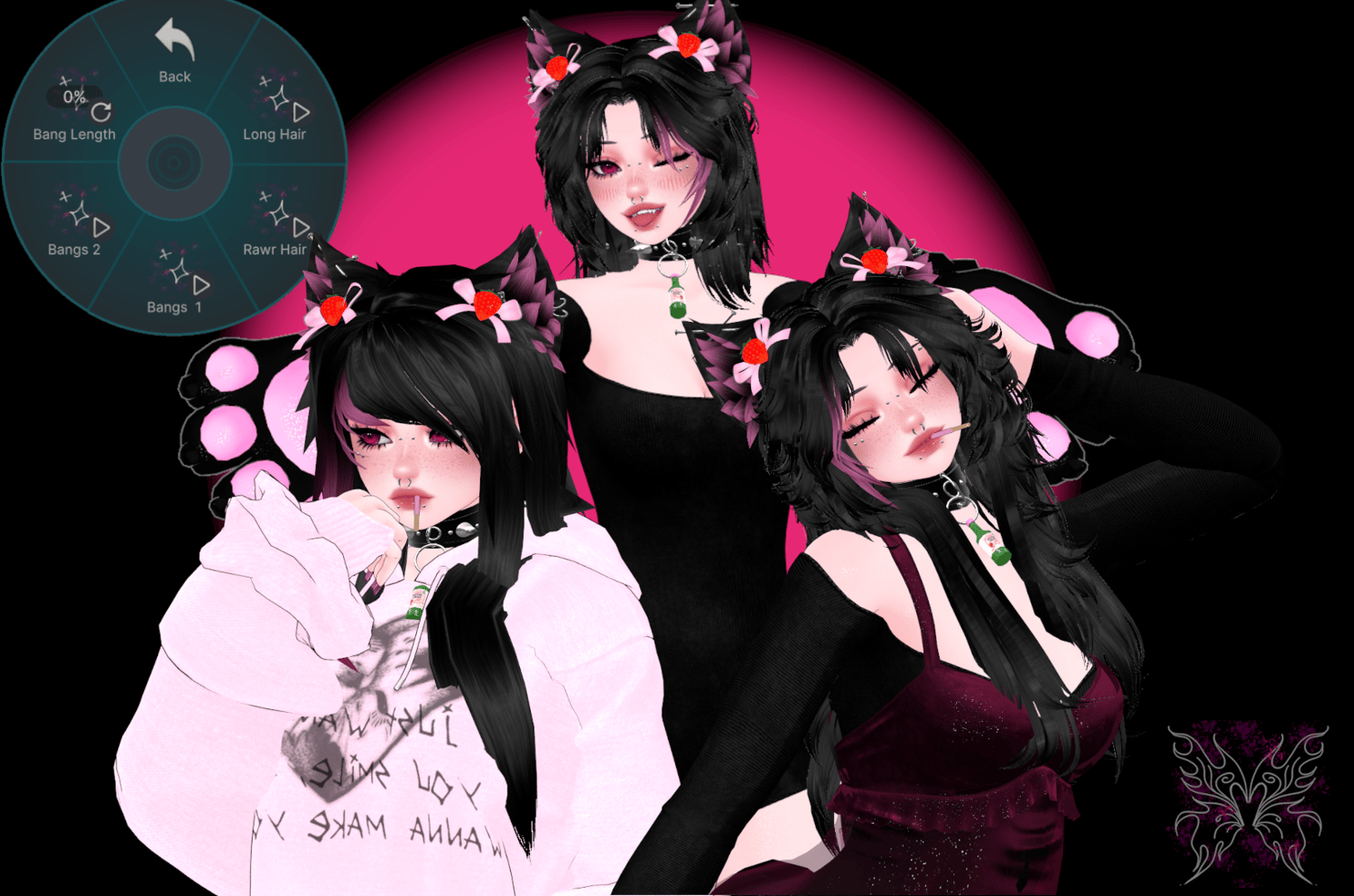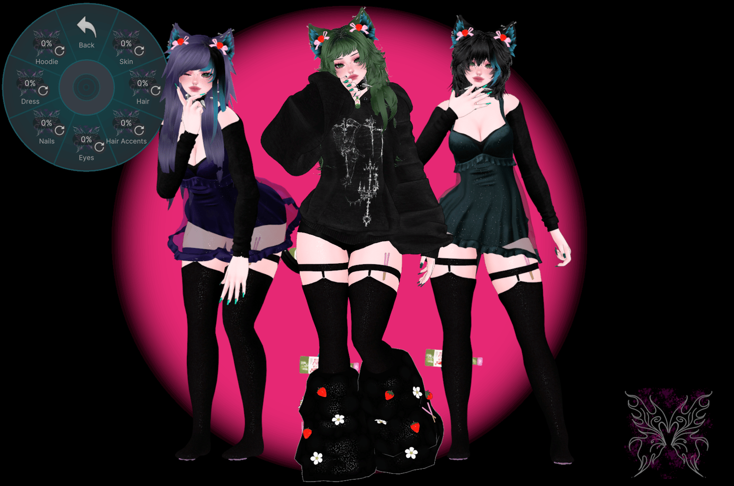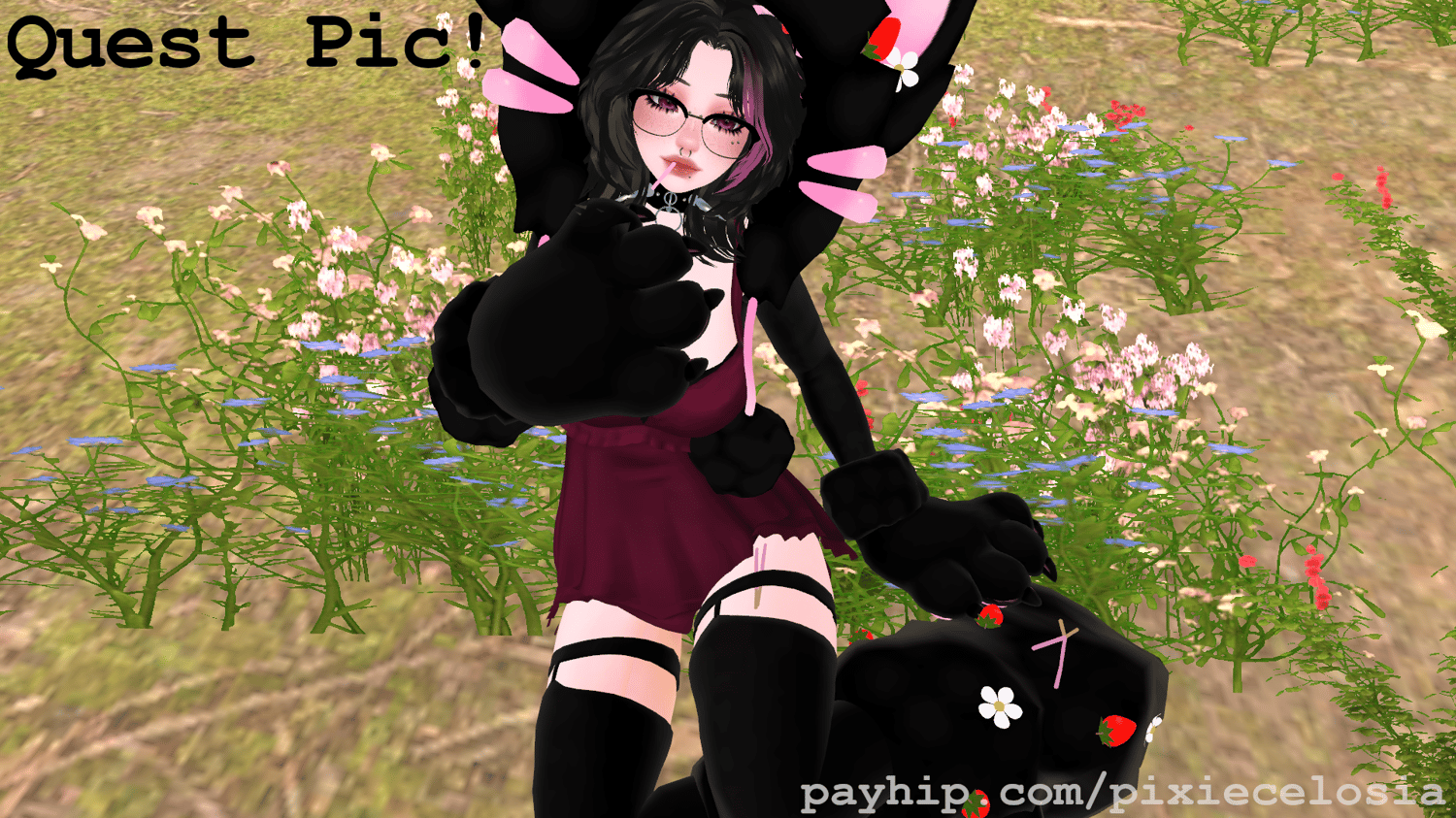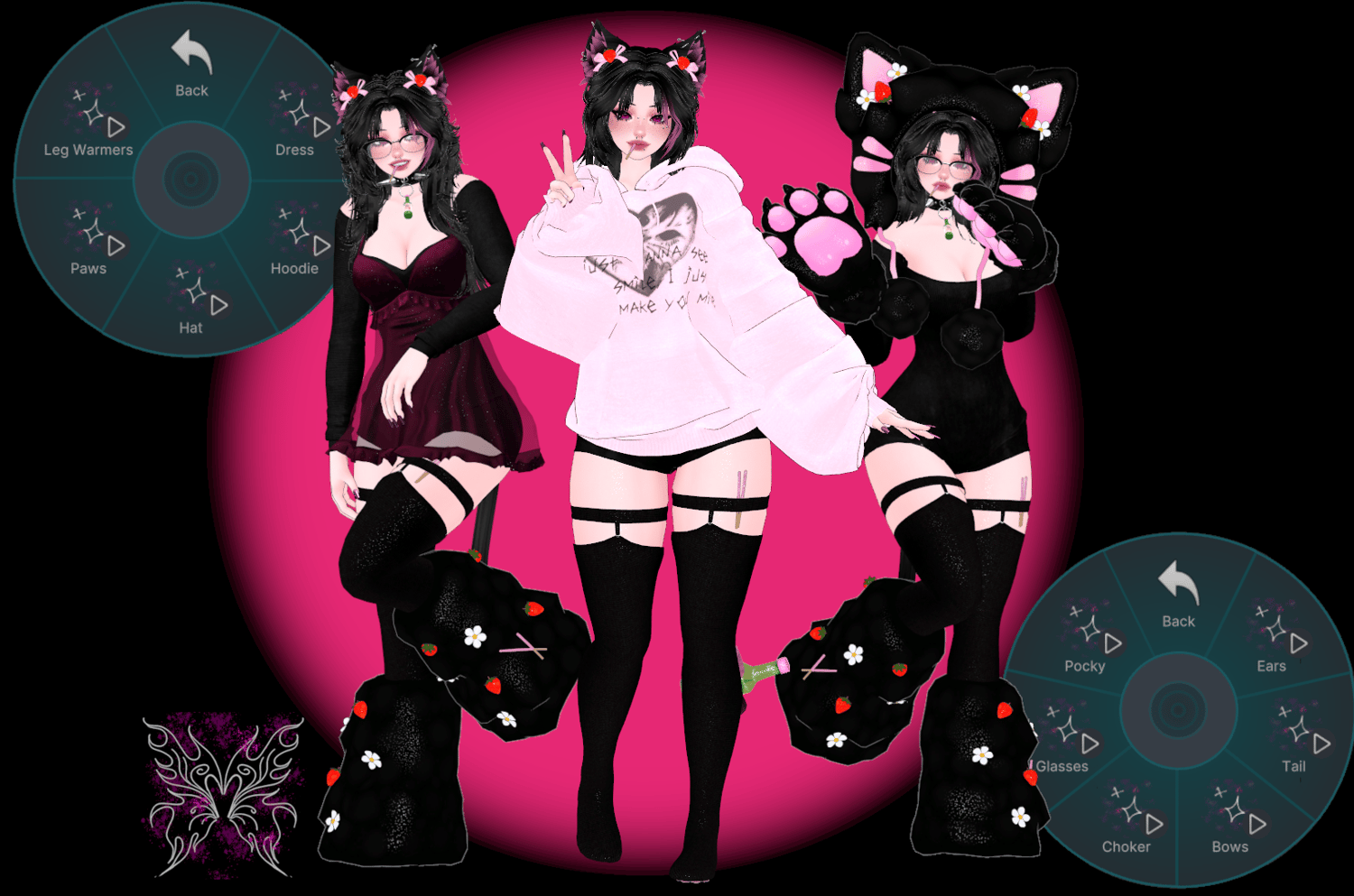 Particles, Pocky, Flowers, Strawberries, Glasses, Paws on socks, Menu Icons, Showcase, Blender Work, Unity Work & Avatar Design by me!