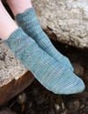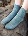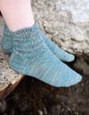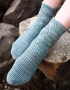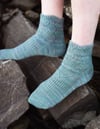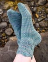 Socks are really just a tube with a bend in the middle, so don't let them scare you! These are top down socks with a heel flap, which means they're easy to try on to check the fit as you go and easy to adjust to suit your feet. If you're comfortable following charts and working in the round, these can totally be your first socks. And if you're already a fan of socks, you'll have great fun with them!