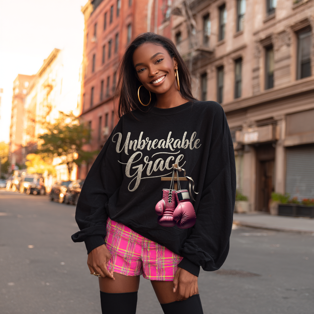 Unbreakable Grace Pink Boxing Gloves Christian Breast Cancer Awareness Design – Digital Download, PNG