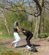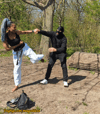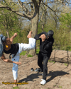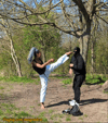 Multiple kicks (head kicks, body kicks) and a final blow to make sure this loser will never ever be able to lurk again.