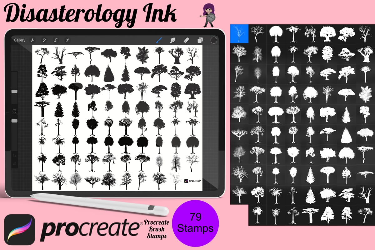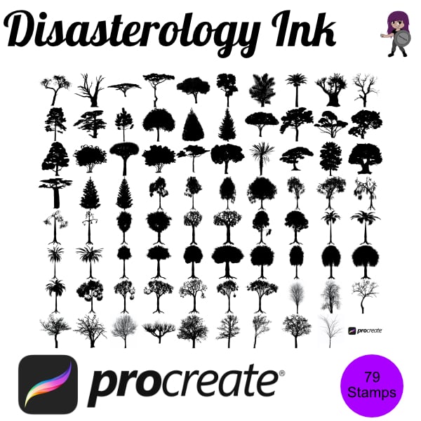 - 79 Tree Silhouette stamps for Procreate