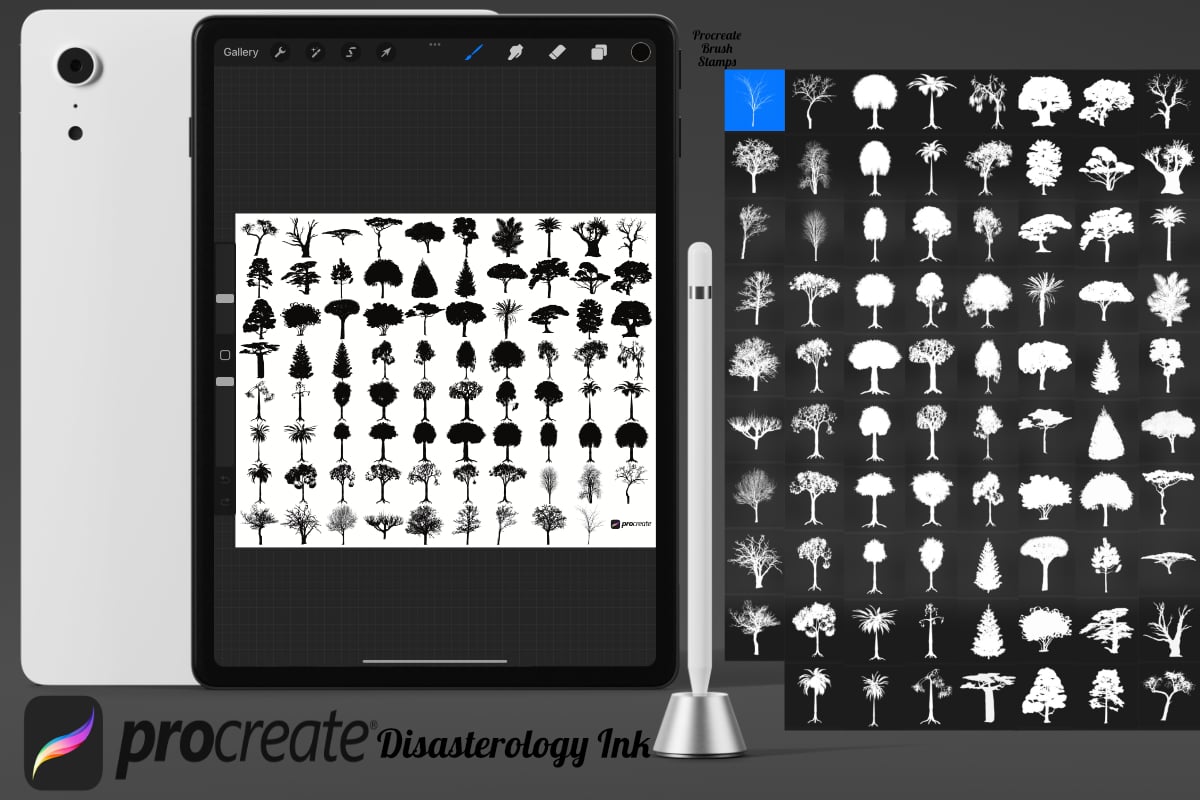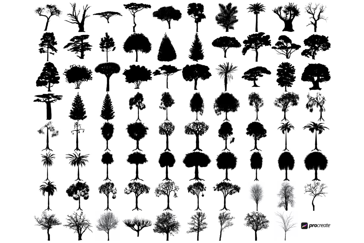 Tree Silhouette Set 2 Procreate Brush Stamps, 79 Trees