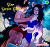 Hueshift on pj set, longsleeve top, eyes, stars.