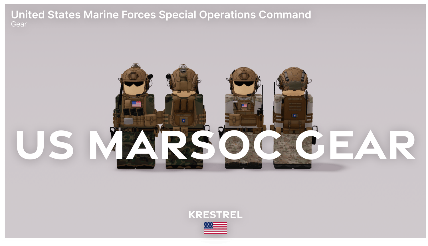 Get your players mission-ready with US Marine Forces Special Operations Command Gear. This detailed gear set brings the exact equipment used by elite Marine Corps Forces Special Operations Command units, perfect for adding true-to-life military realism to your game.