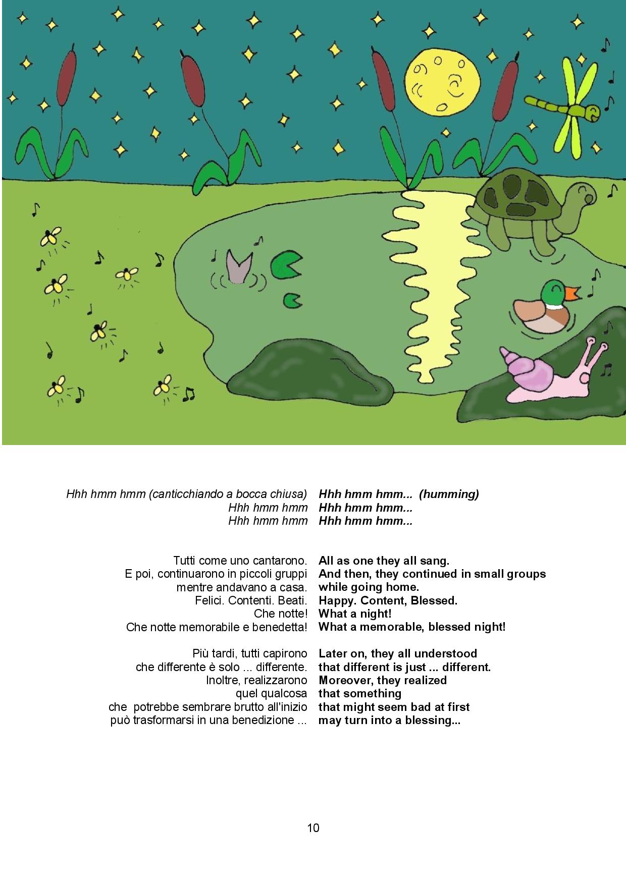 - la parte della storia è lunga circa 10 pagine con le illustrazioni nella parte superiore e il testo nella metà inferiore;