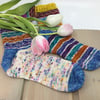 This pattern is designed to be used with one main color, one mini skein for heels and toes and ten micro skeins in contrasting colors (10grams = 42m), but you can absolutely use scraps, just two colors or whatever combination you like. This would also be great for those of you who have an advent calendar that did not include a pattern.