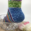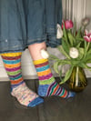 This is actually two patterns in one. Knit 16cm legs with stripes on the foot or 29cm legs with shaping and a plain foot. You can easily mix and match to your heart's content.