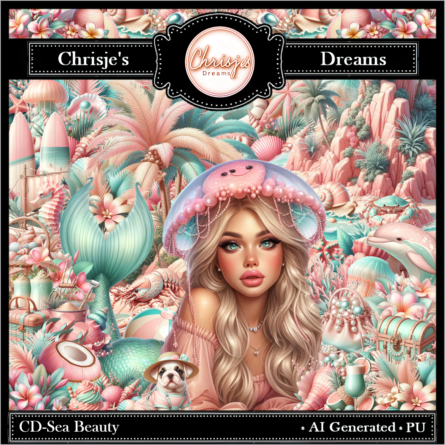 Sea Beauty is a ☀️🍹Summer☀️🍹 themed kit which contains 105 elements, 10 papers and 1 beautiful AI generated png tube by Chrisje's Dreams.