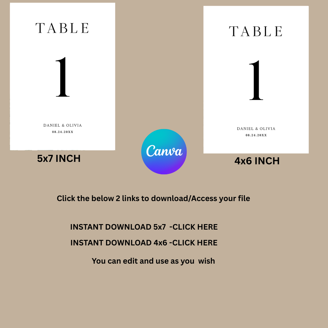 Customize text, fonts, numbering, and colors easily in Canva, then print at home or through a print shop. Ideal for DIY brides, planners, and last-minute stationery needs.