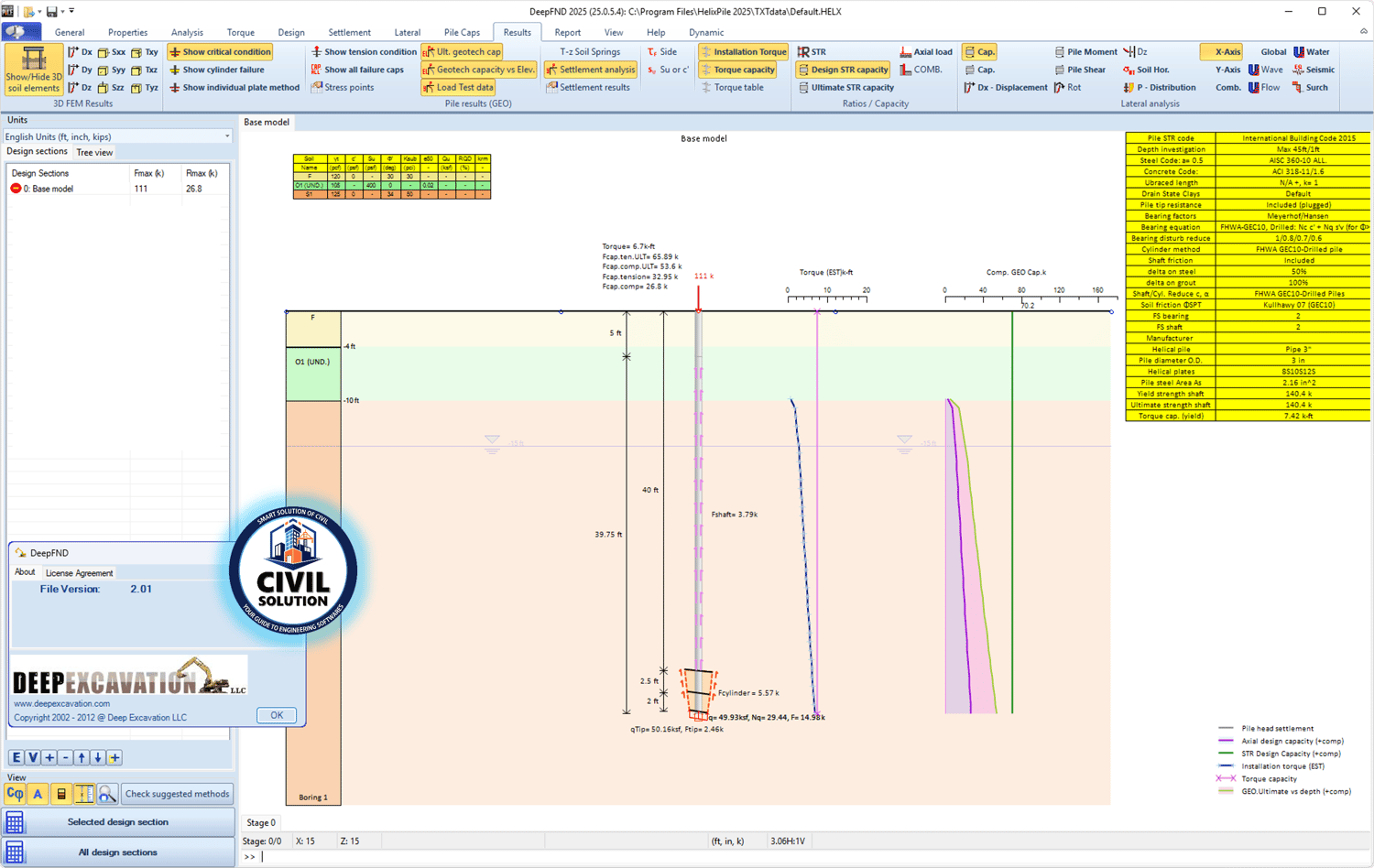 🚧 Deep Excavation DeepHelix 2025 v25.0.5.4 is a specialized software tool that focuses on the design and analysis of helical pile foundations. It provides comprehensive features for the structural and geotechnical modeling of helical piles, including load capacity calculations and compliance with international standards such as Eurocode, AASHTO, and IBC. The software supports different pile configurations, including single piles and pile groups, and offers detailed reporting and graphical outputs for design verification and project documentation.