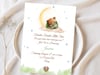 Celebrate your little star with this sweet editable baby shower invitation! Featuring a cuddly bear sitting on a cloud with the moon and stars above, this charming design is perfect for honoring your special day. Easily personalize the text to include your details and create a keepsake your guests will love.