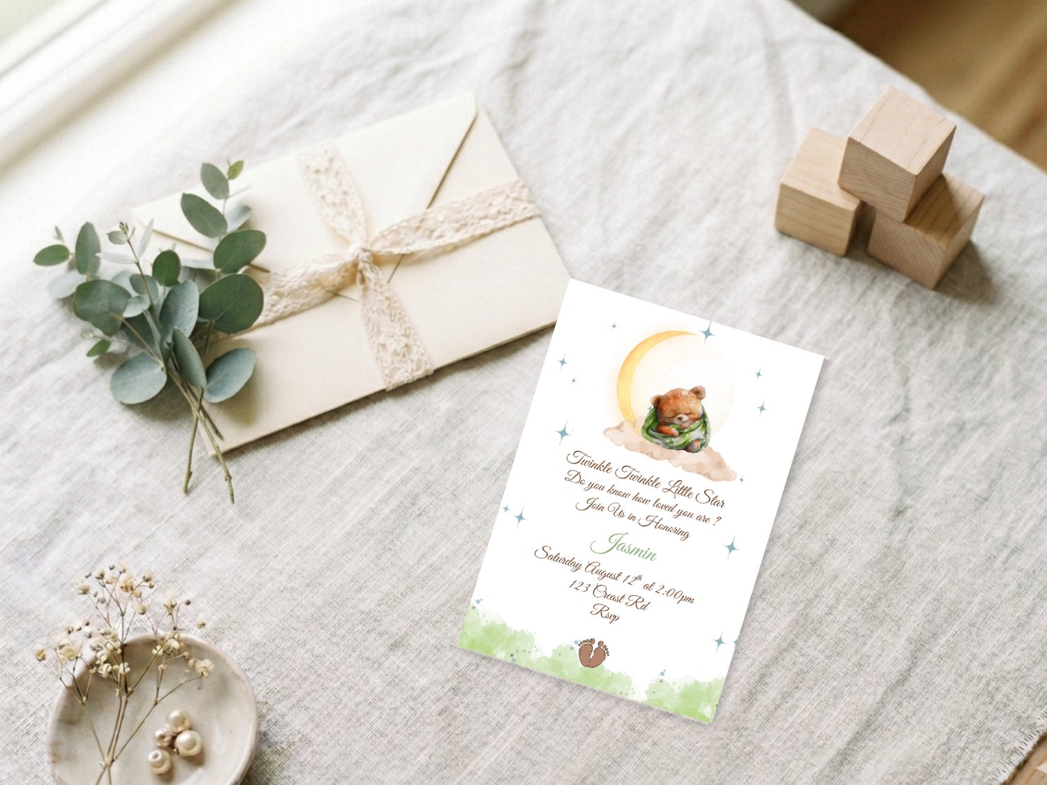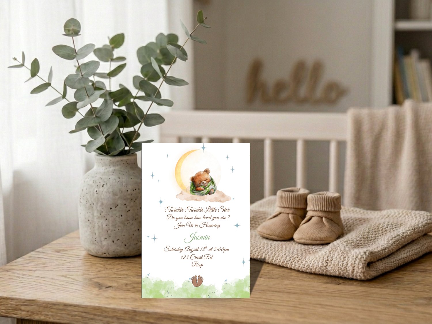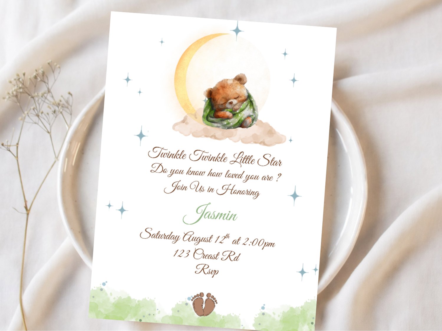 Editable Baby Shower Invitation – Bear on Cloud Twinkle Twinkle Little Star