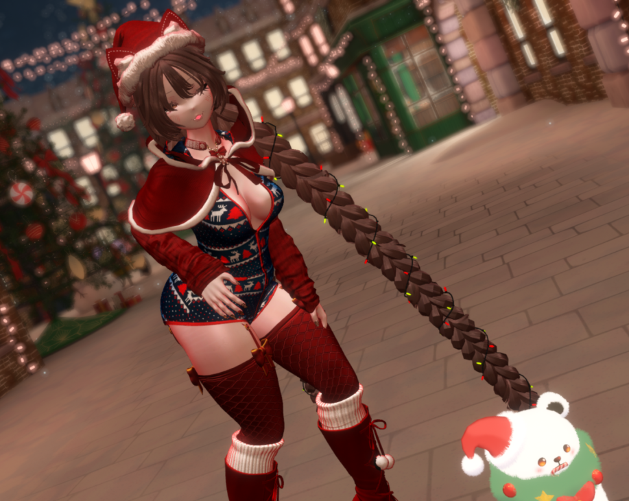 PC: Boobs, butt, Tummy, Cheeks, Both Hairs, Mouth Lights, Choker, Santa hat, Follower, Light flows, Candycane Fidget,