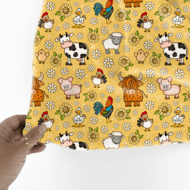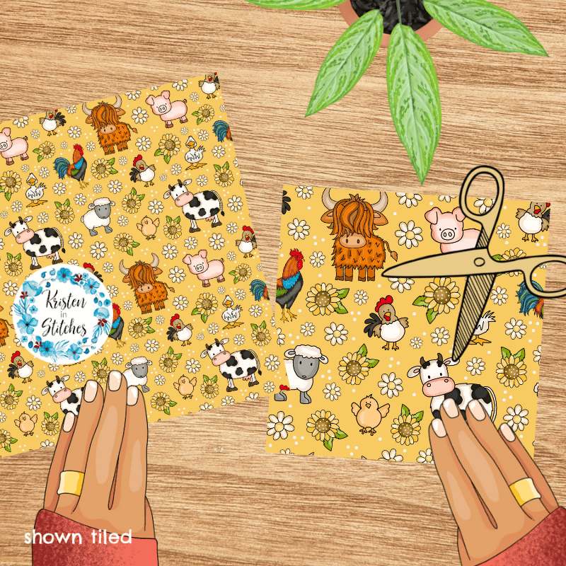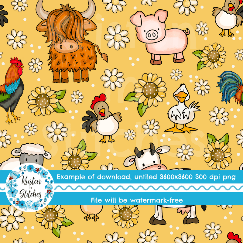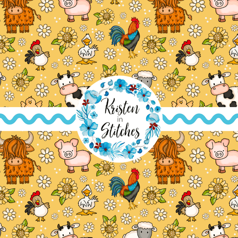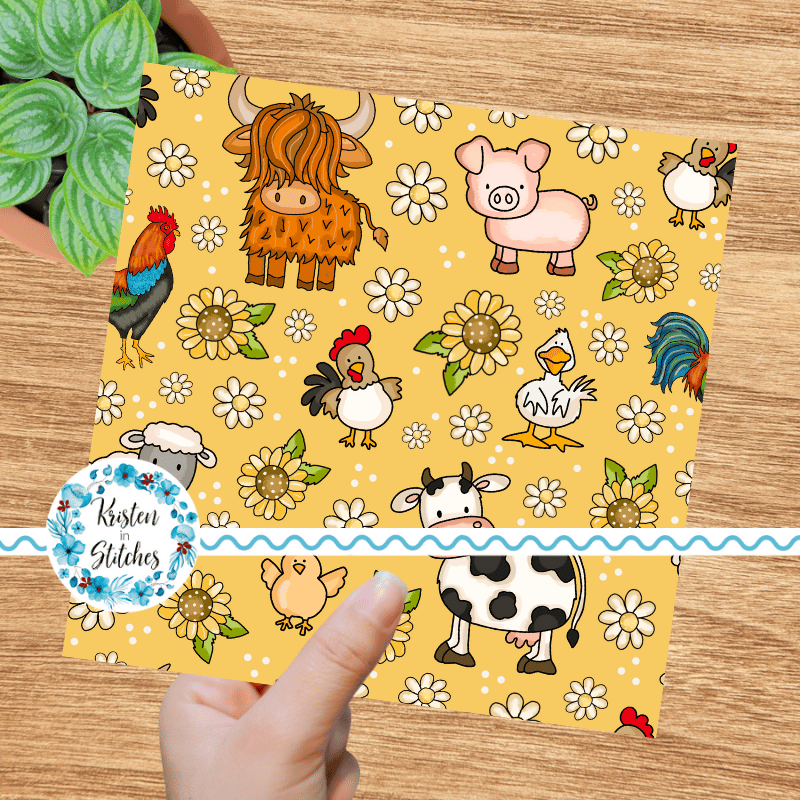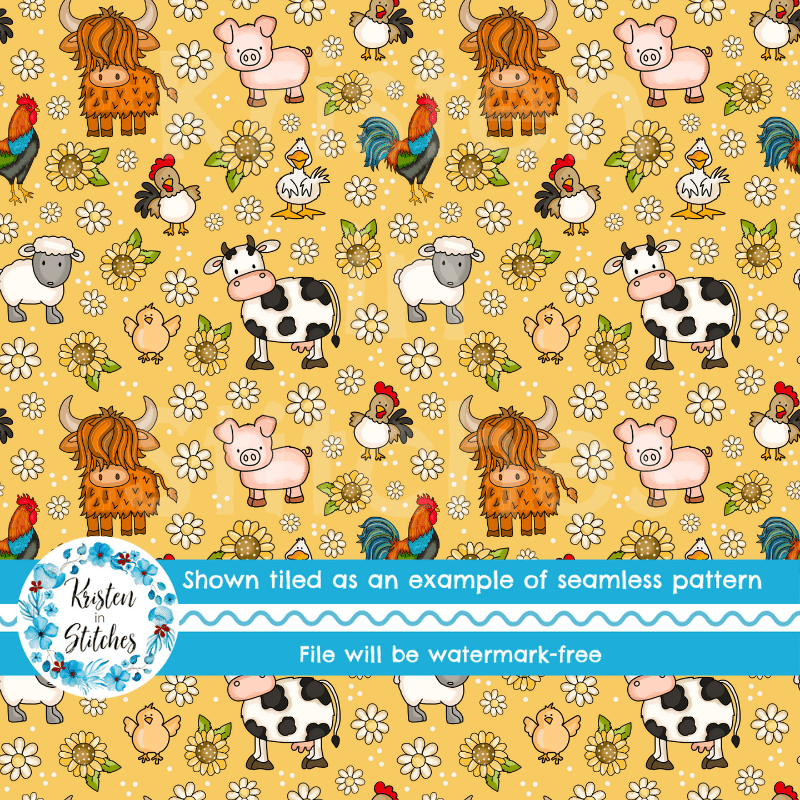 Farm Animals Seamless Pattern, Nursery Floral, Yellow
