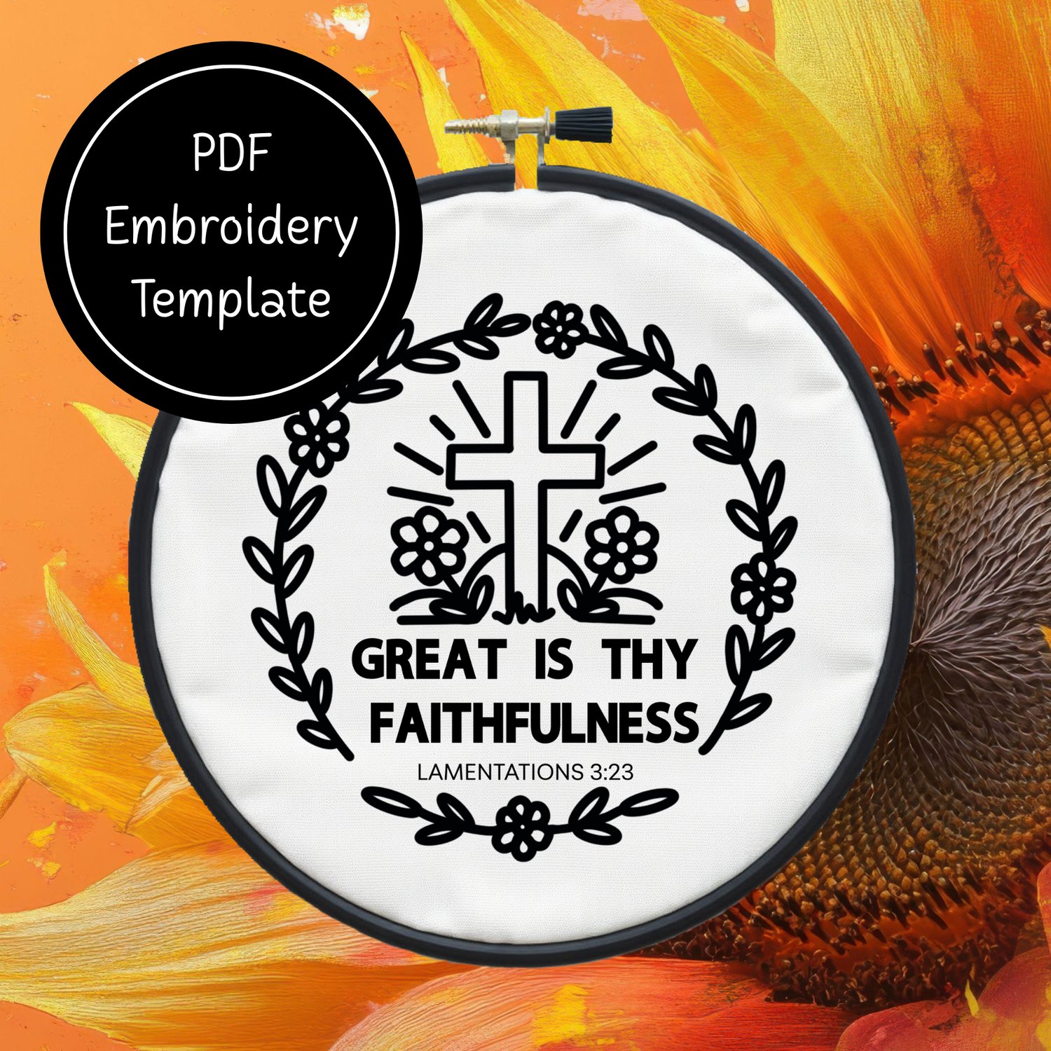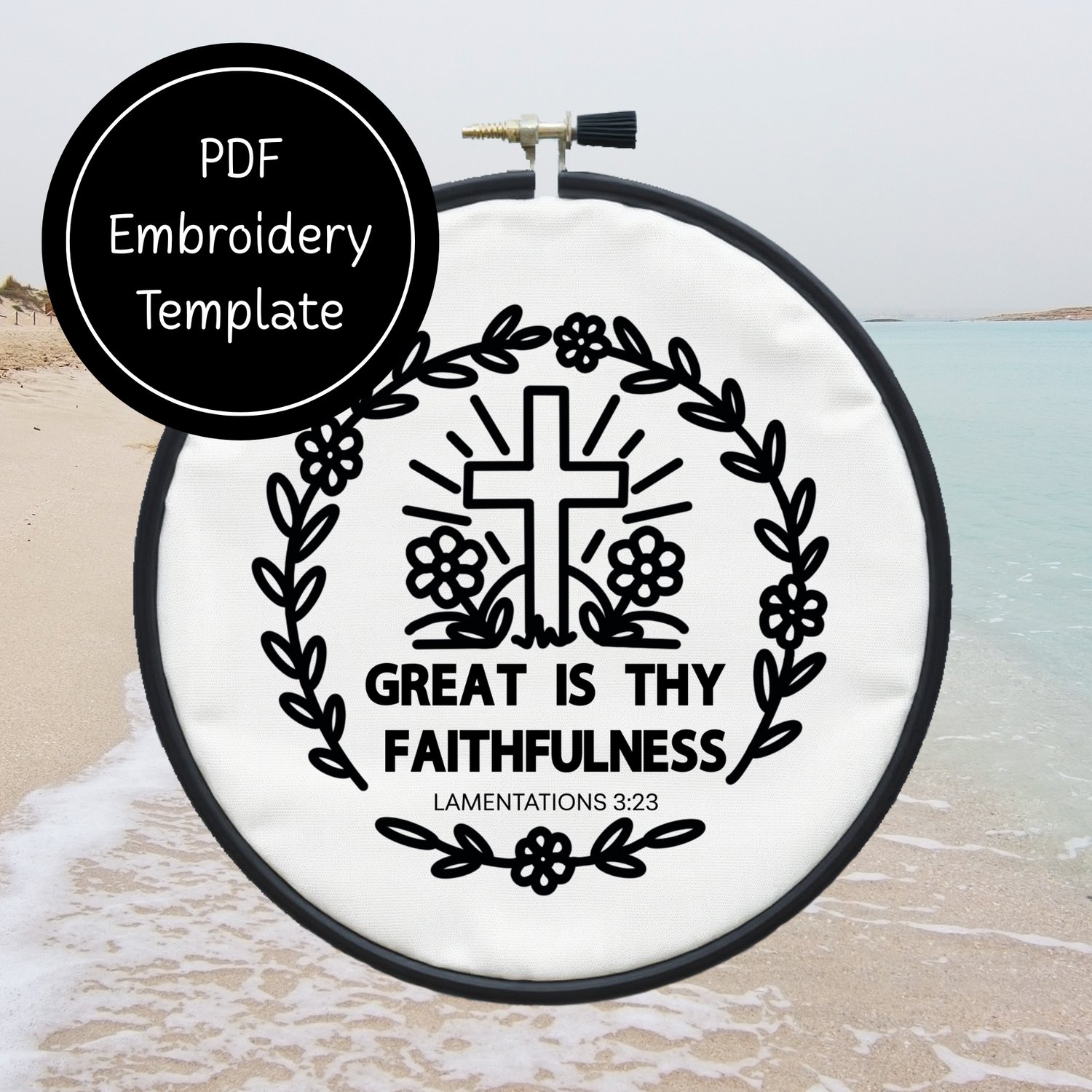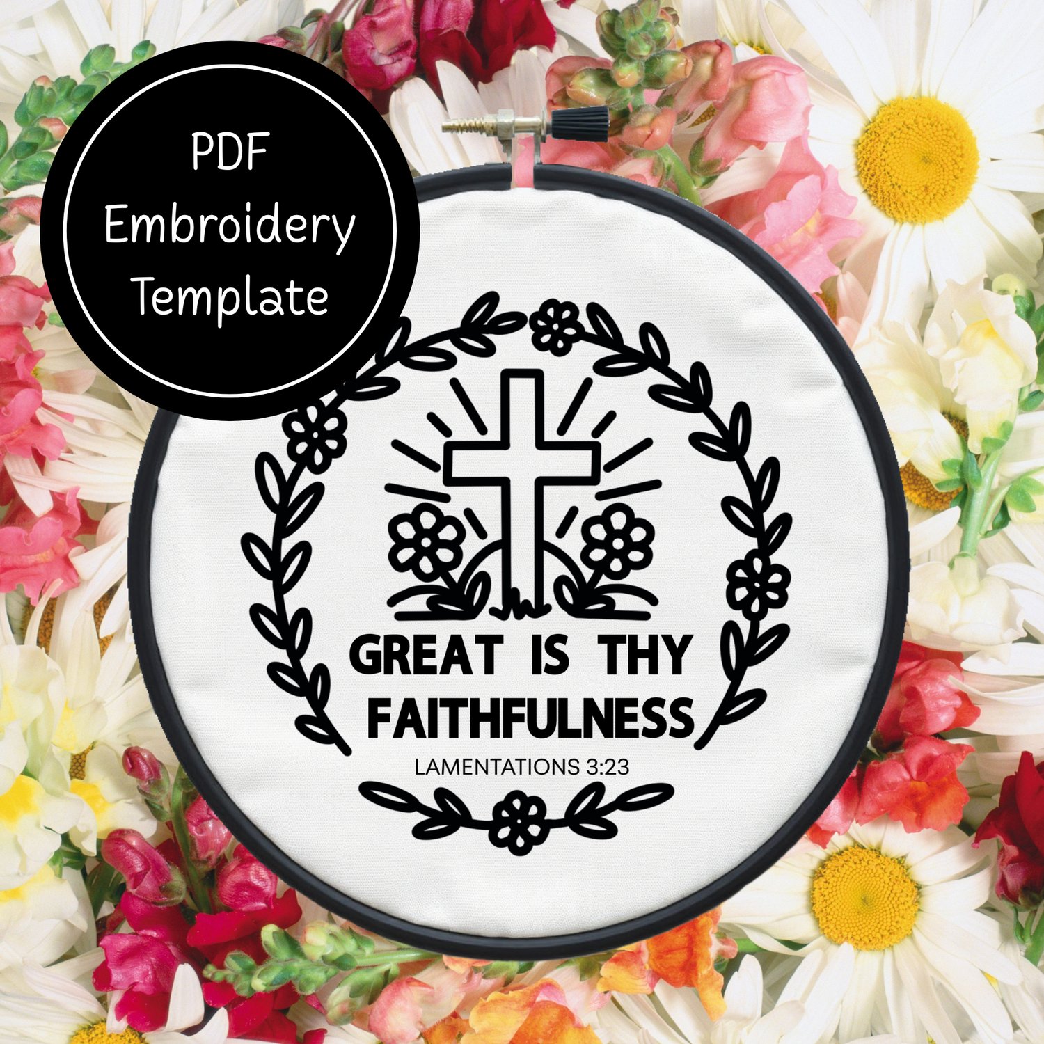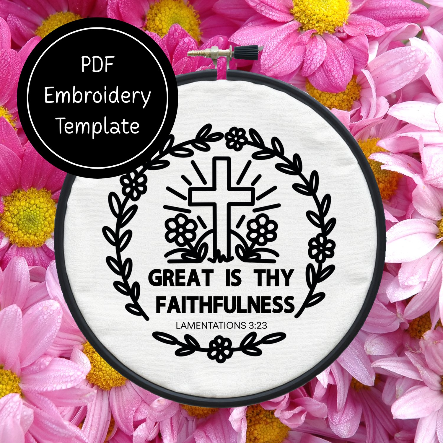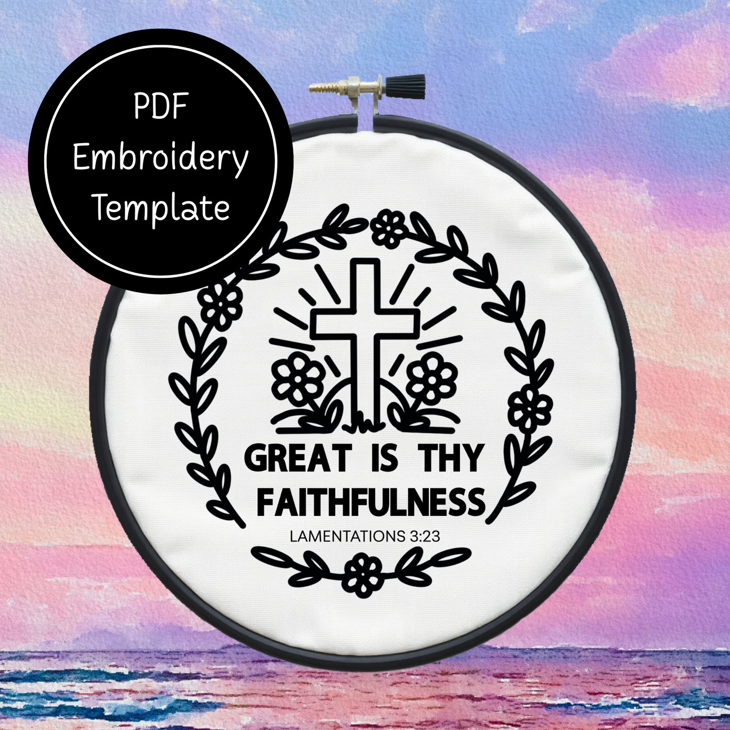 Make this Great is Thy Faithfulness Template come alive with your choice of colors and stitches to create this simple embroidery template.