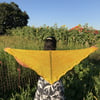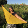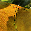 Ember Days are 12 days in the year, four sets of three, set aside for prayer, fasting and giving to the needy. Ember, in this case, comes from the word simply meaning time or season (a corruption of the words Quatuor Tempora for four times). So, these are seasonal days of prayer. This shawlette is a simple triangle that is perfect for contemplation, with the easiest short rows you can imagine to shape the fluttering edge, giving a little hint to heads of grain and wildflowers in the eyelets. Using only one skein of fingering weight yarn, this is a quick knit that would make an excellent gift.