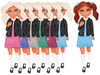 Schoolgirl with bunches and backpack. Two skin colours, 6 uniform colours, 4 hair and eye colours.