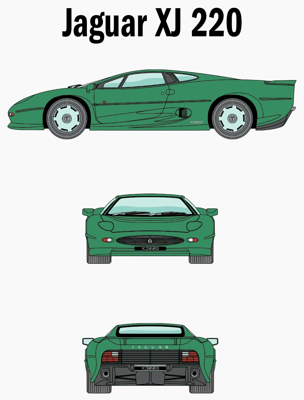 Jaguar XJ 220 Car Blueprint PDF SVG Vector Drawing.