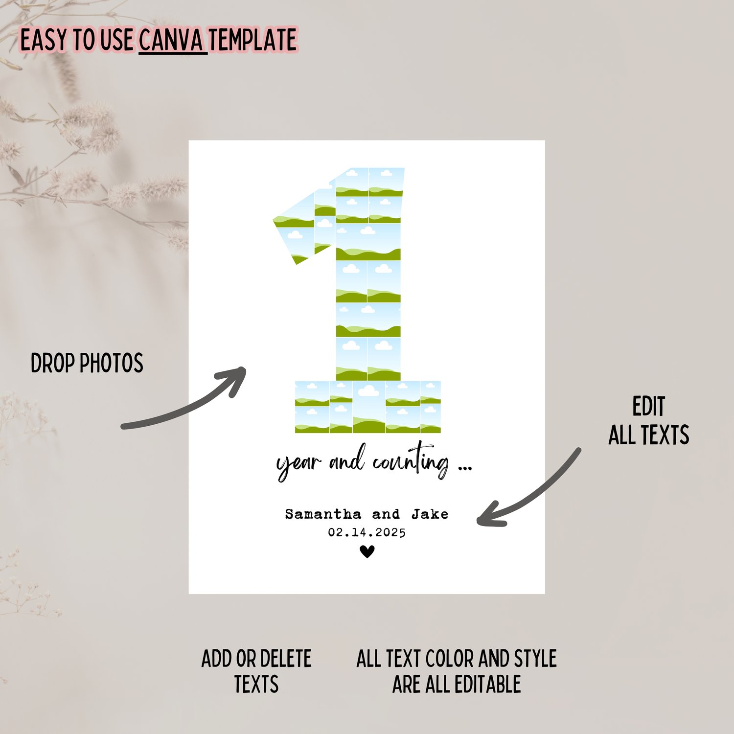 EDITABLE Custom 1st anniversary collage | Photo collage | anniversary gift | 1 year anniversary | gift for boyfriend