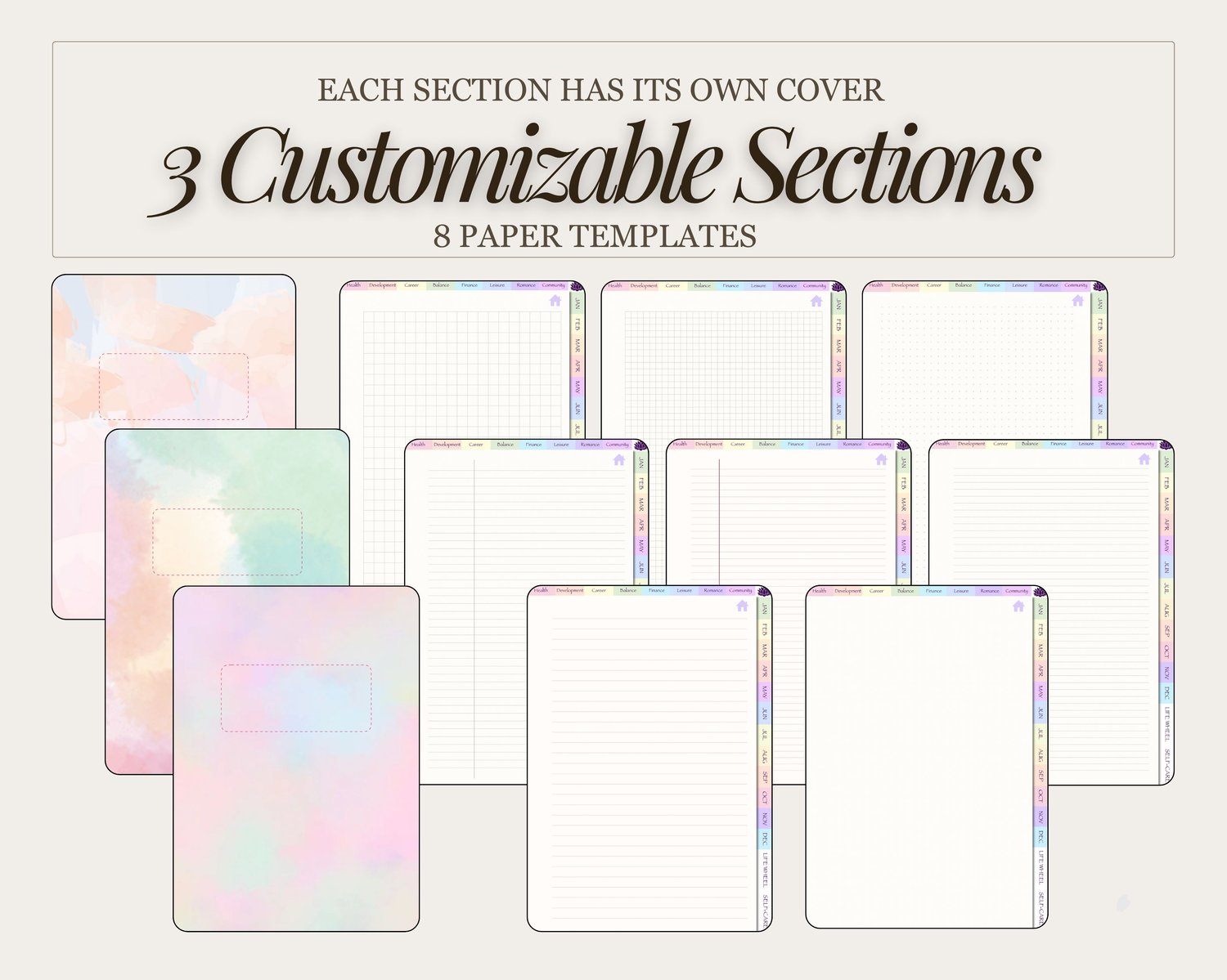 ✔️ Customizable Sections – Add notes, goals, or reflections with versatile templates.