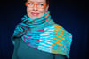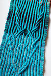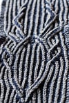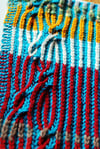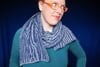 Jonathan appears as a squishy, 2-color brioche, stripy scarf with some cables here and there, until you hold it flat, stretching it out a bit, and reveal the hidden goats!