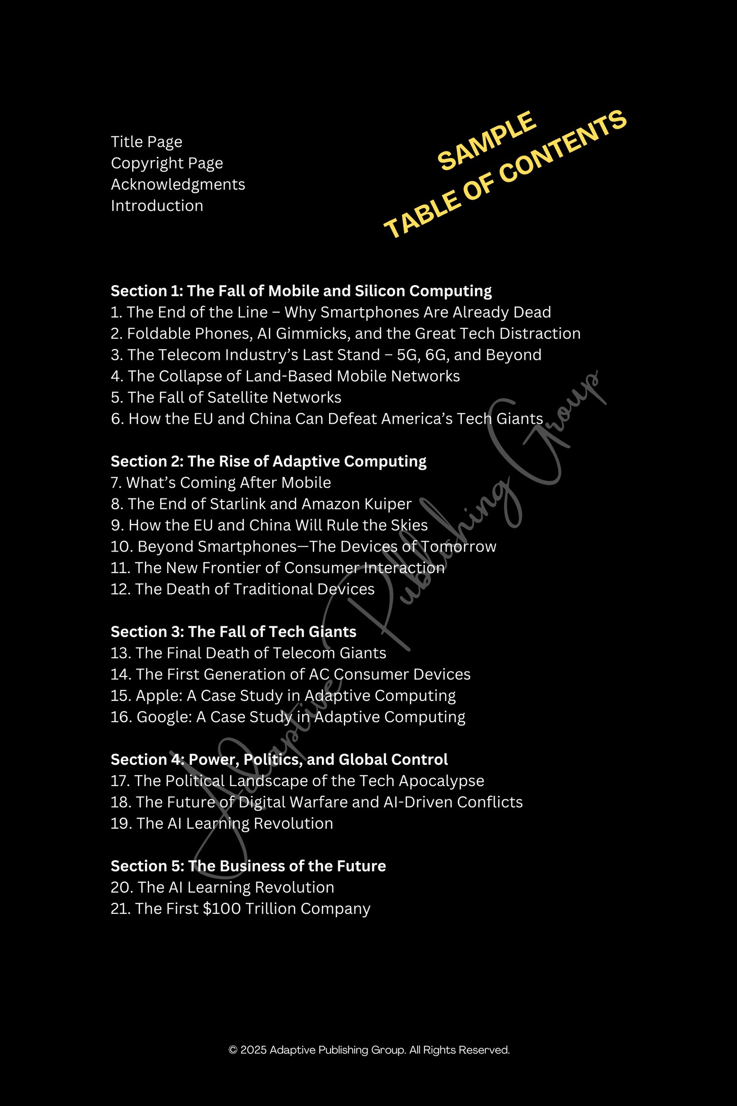 This book reveals how Adaptive Computing (AC) will replace mobile networks, disrupt trillion-dollar industries, and render silicon-based technology obsolete.
