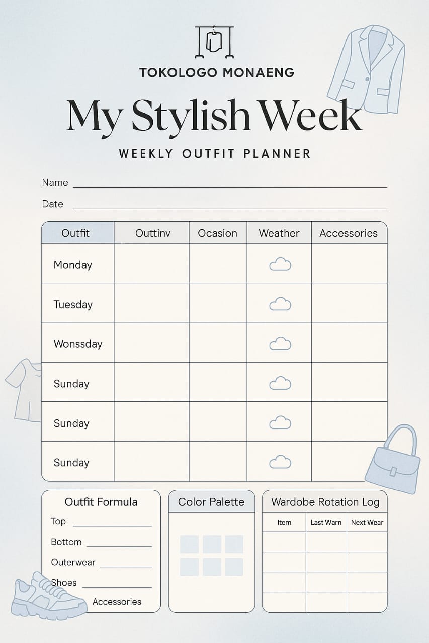 My Stylish Week — Weekly Outfit Planner Template by Tokologo Monageng