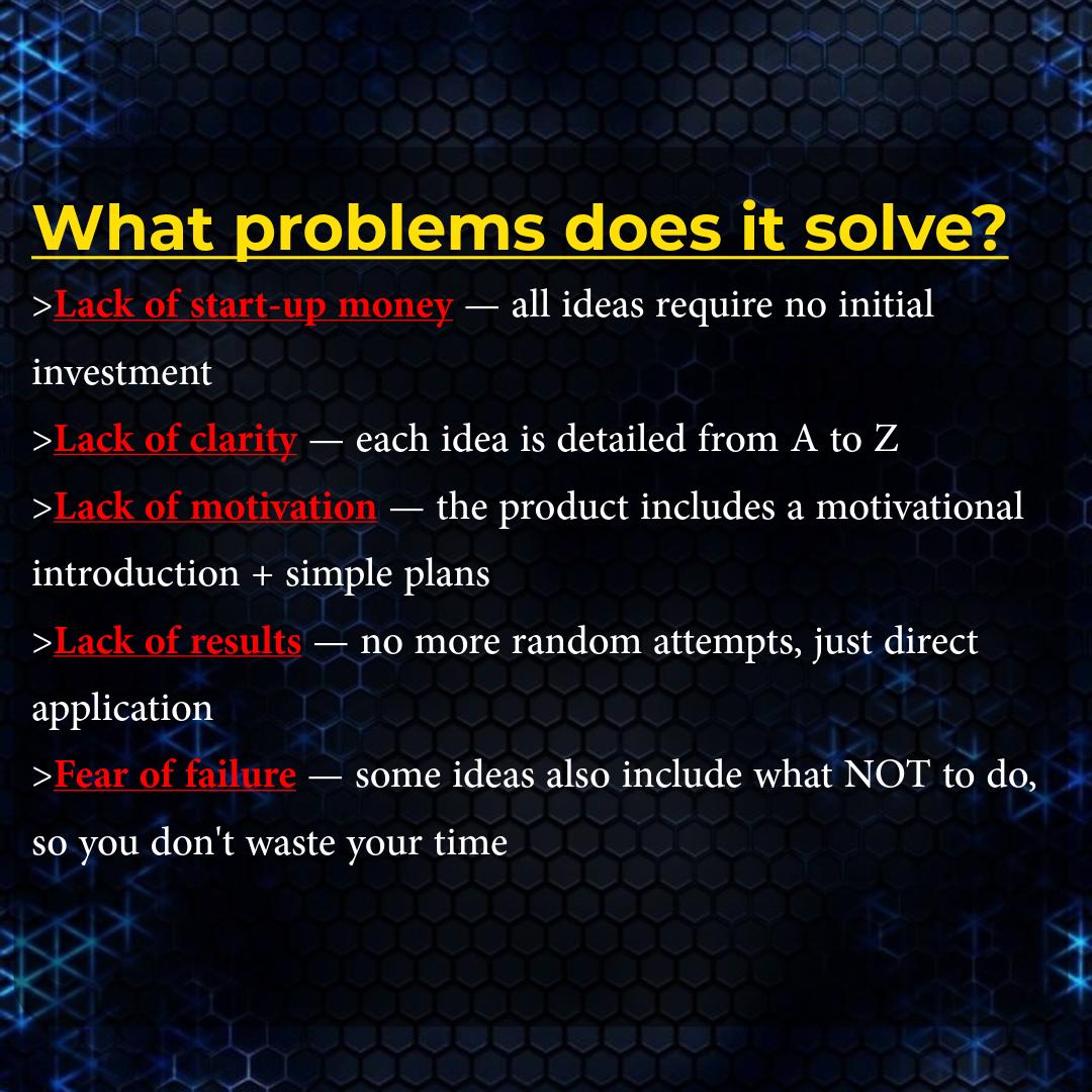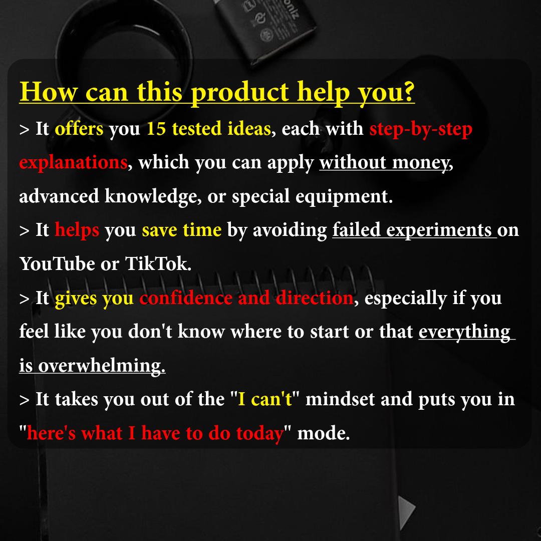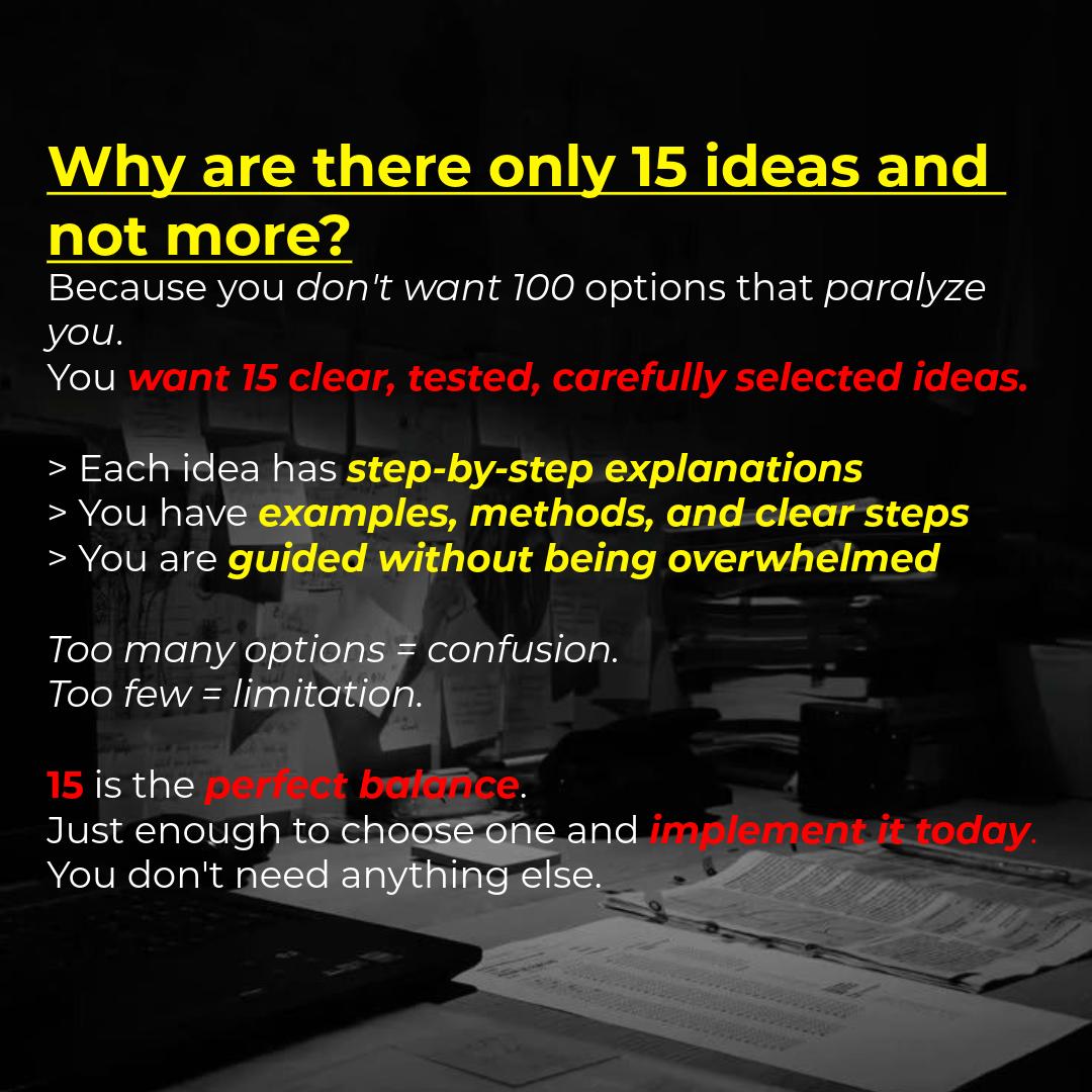 A 100% practical digital PDF with 15 real business ideas you can start today, with no money, no risk, and no special skills.