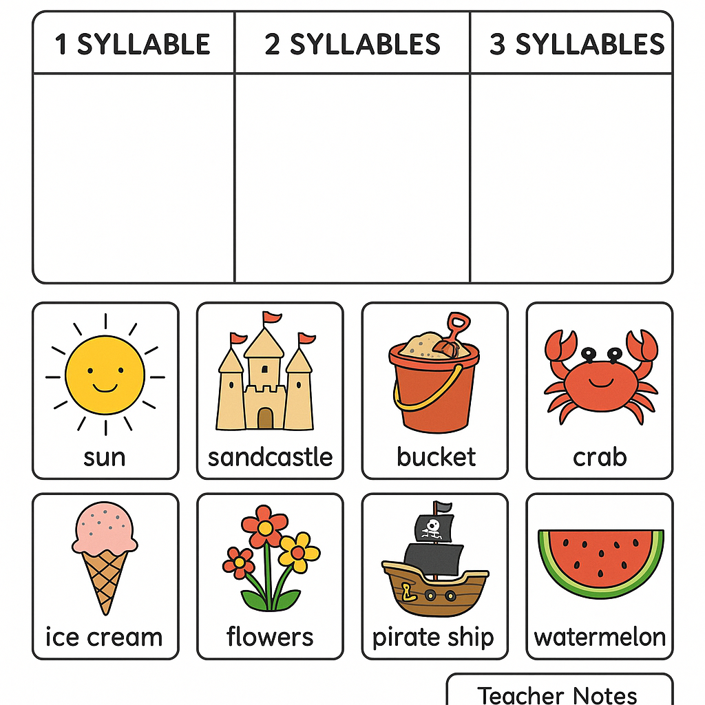 Summer Syllable Sort – Phonological Awareness Activity (EYFS – KS1)