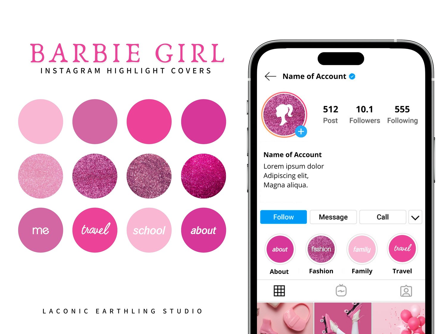 Social Media Instagram Barbie Girl Highlight Covers | Neutral Story Instagram Highlights | Editable Canva Covers | Barbie Pink, Hot pink