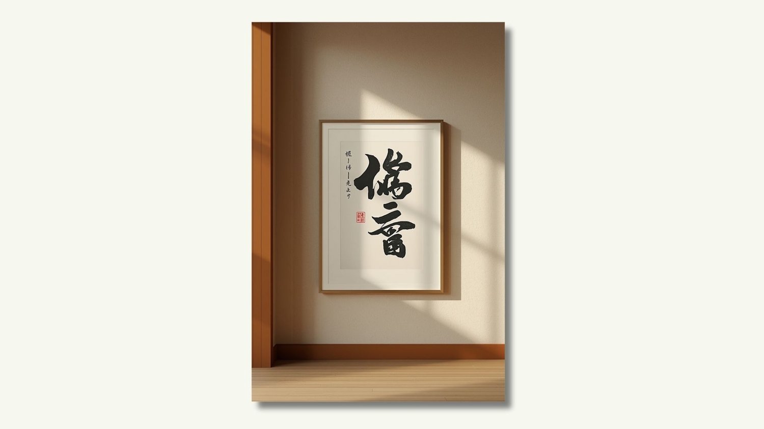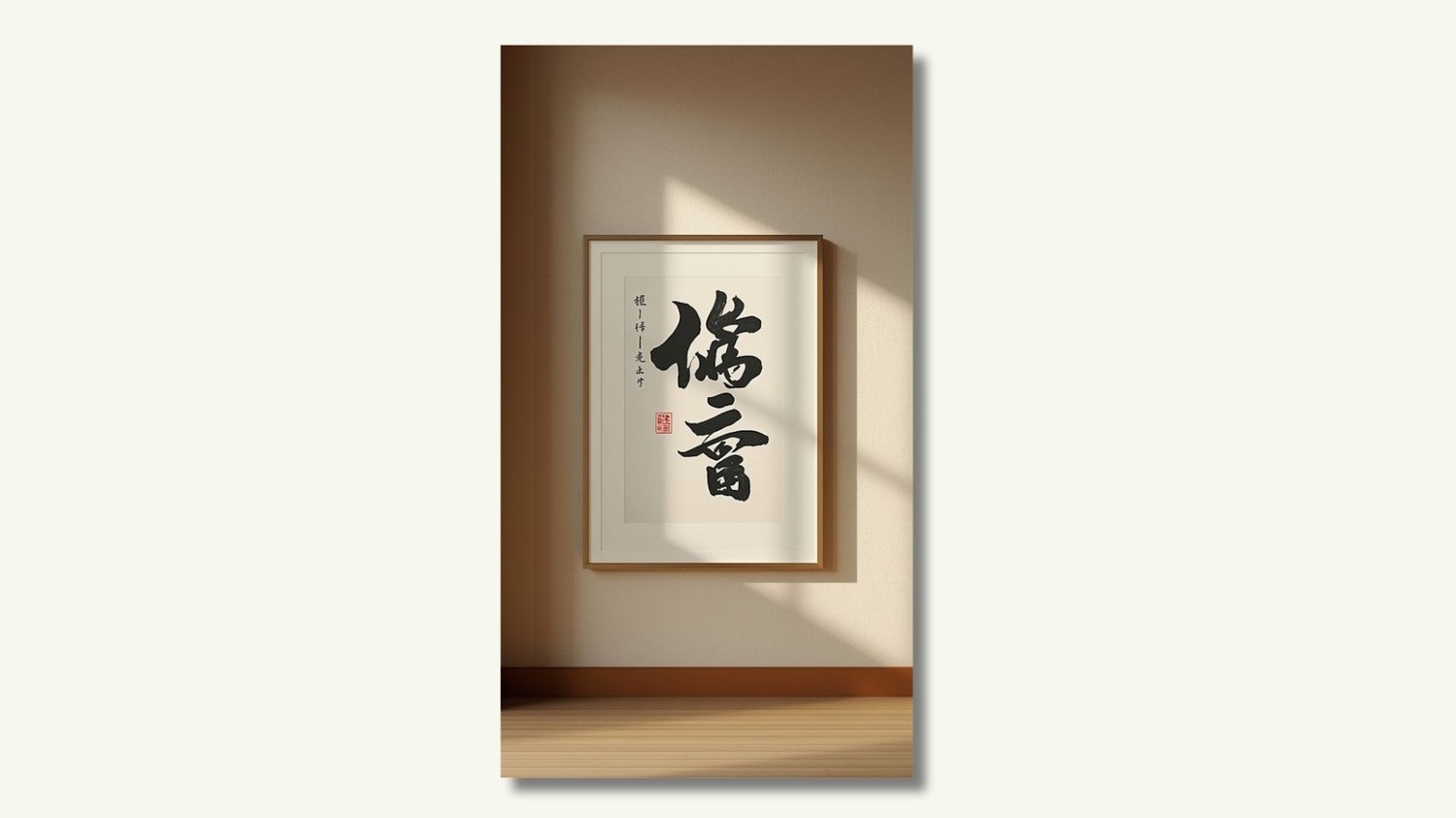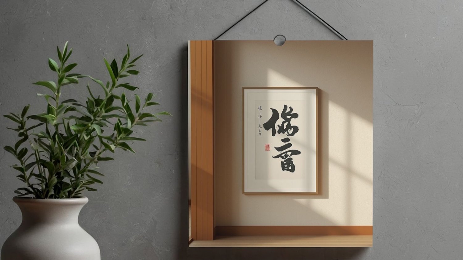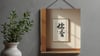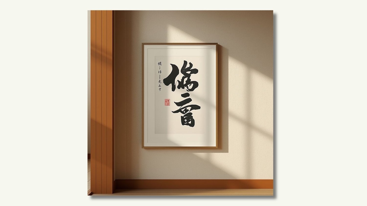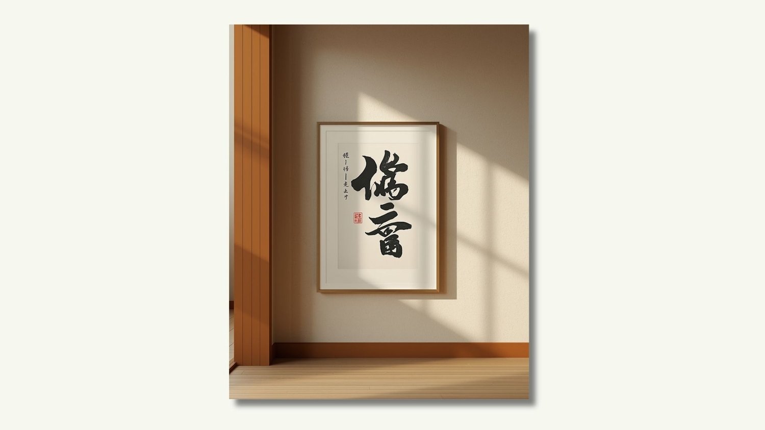 Elegant Japanese calligraphy presented within a modern architectural setting. Emerald ink tones and cream textures create refined cultural wall art rooted in tradition yet aligned with contemporary Japandi interiors.