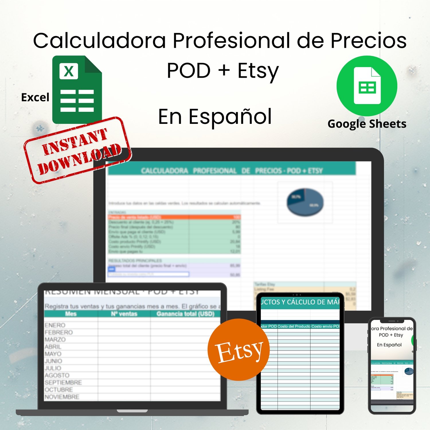 Calculadora de Precios Etsy + POD en Español | Hoja de Cálculo para vendedores
