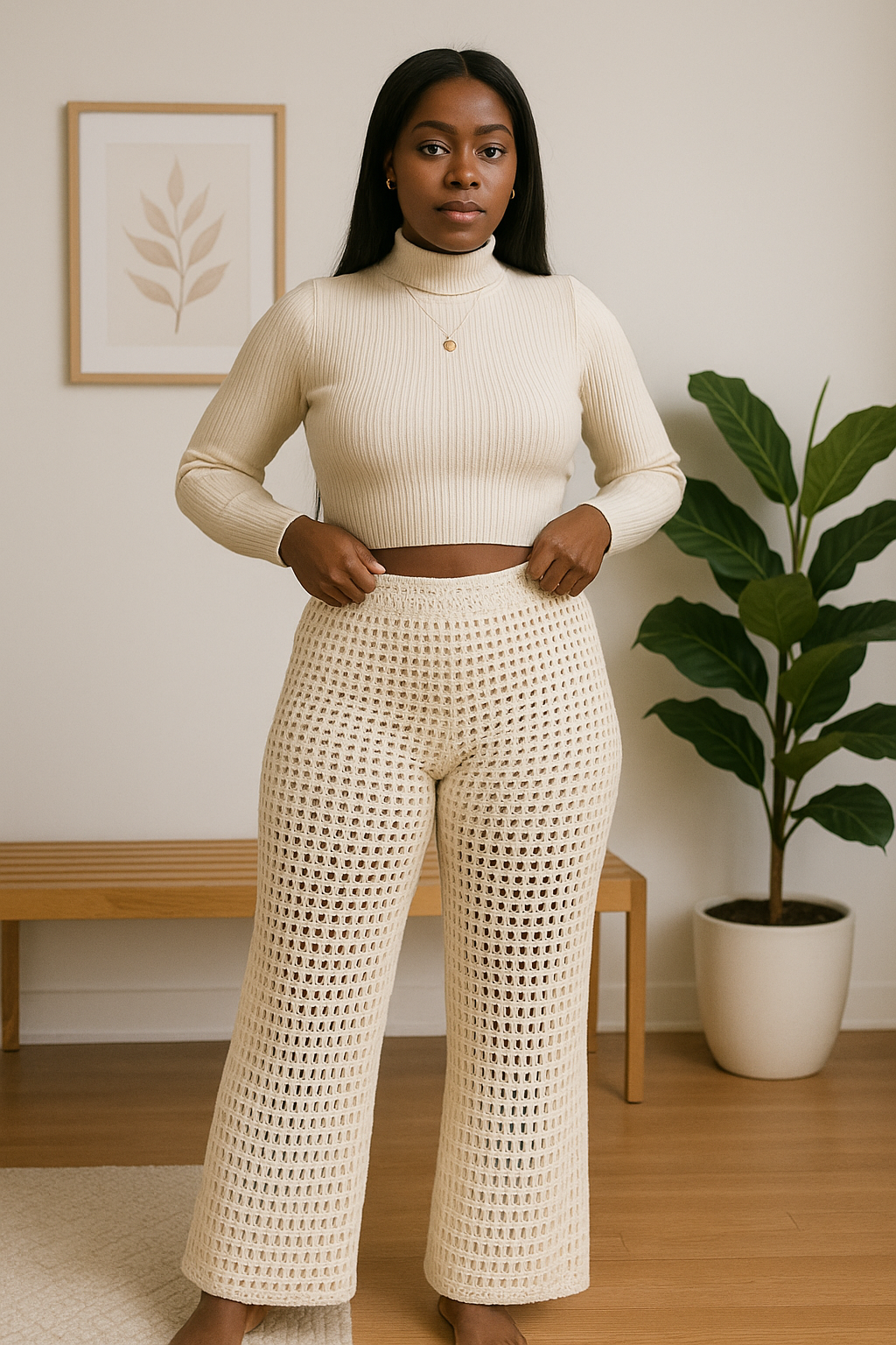 Perfect for summer, festivals, or beachwear, this step-by-step PDF pattern guides you through creating your own lightweight, adjustable mesh pants using basic crochet stitches. Designed for advanced beginners and intermediate crocheters, the pattern is flexible, comfortable, and easy to customize for any size or length.