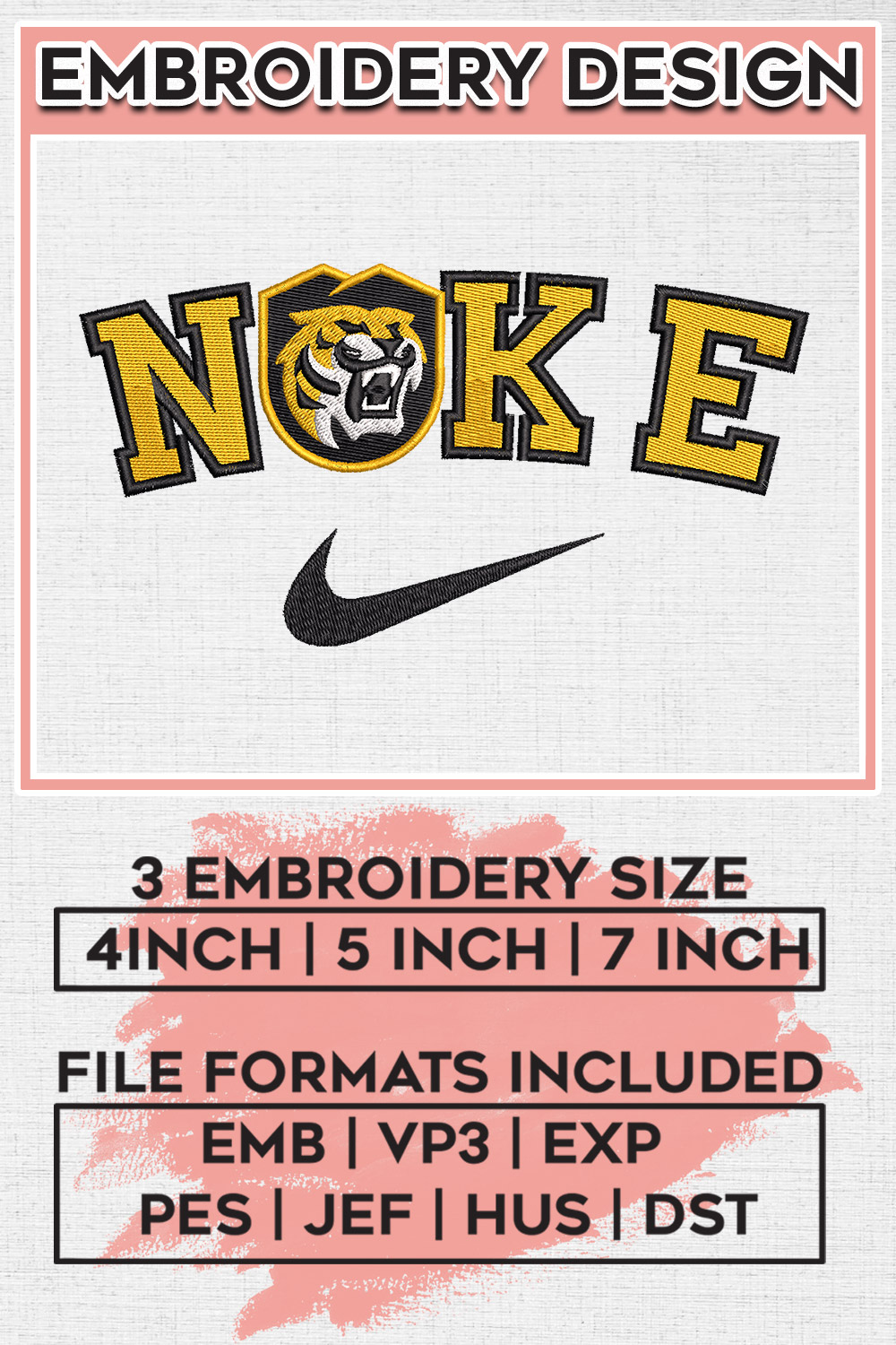 Nikee Colorado College Tigers Football Team Logo Embroidery Designs, NCAA Colorado College Tigers Machine Embroidery Files, NCAA Logo embroidery designs, Ncaa Colorado College Logo, Digital Download