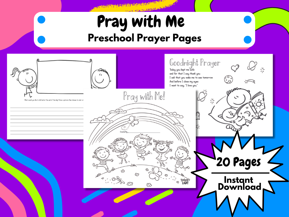 This printable children's prayer book titled, "Pray with Me," is full of cute little prayers, illustrations, and space for getting creative. Detailed instructions and suggestions are included in this resource.