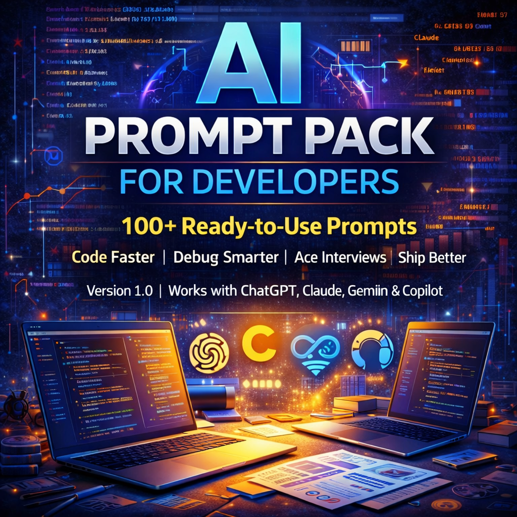AI Prompt Pack for Developers is your ultimate shortcut to unlocking the full power of tools like ChatGPT, Claude, Gemini, and Copilot. Whether you're a beginner, intermediate coder, or experienced engineer, this collection gives you battle-tested prompts designed to dramatically boost your productivity.