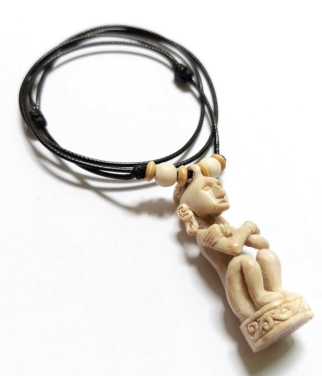 The material is made from deer antlers and carved using a hand drill. Best quality carving art