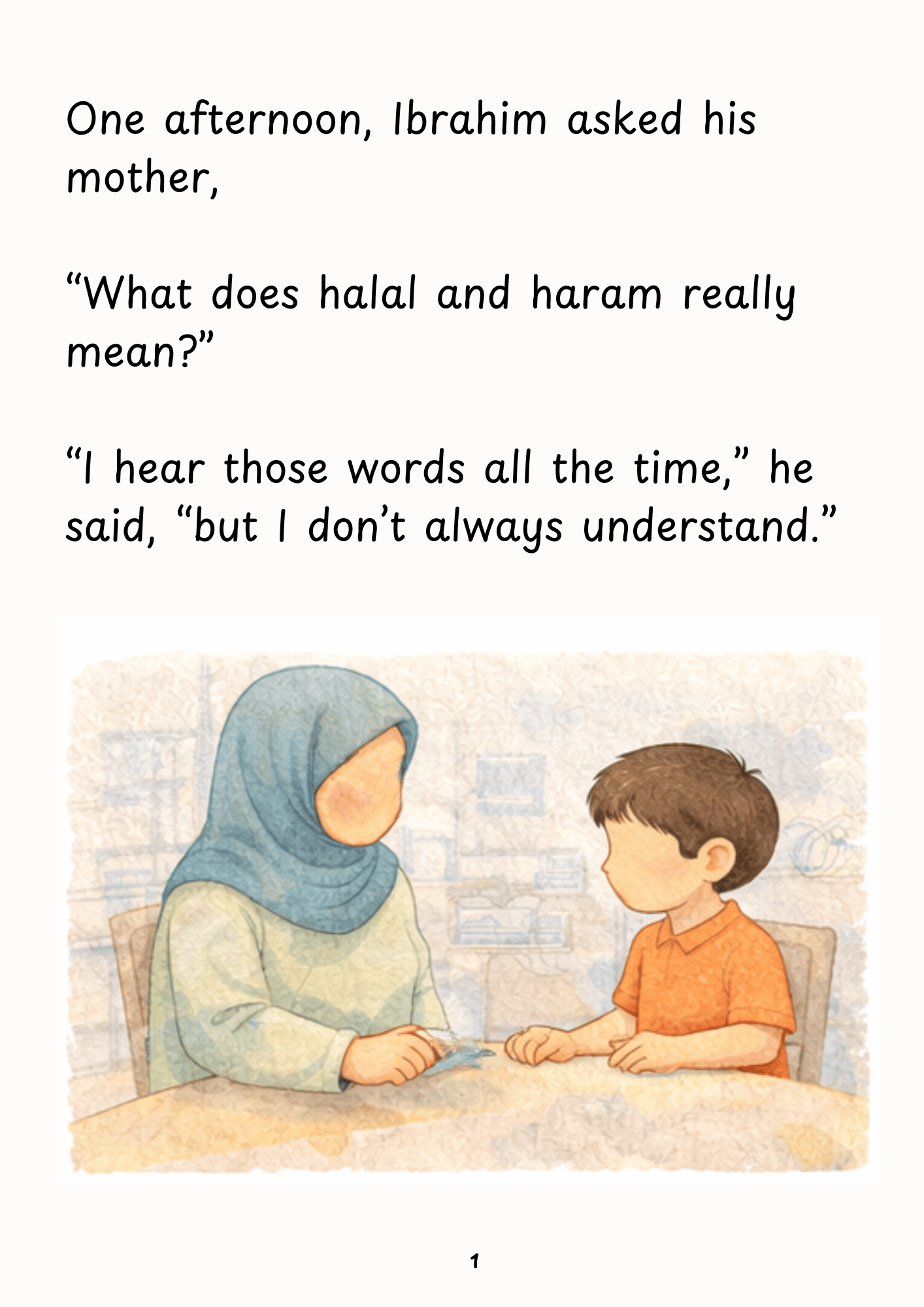 This thoughtful story follows Ibrahim as he asks a simple question many children wonder about. What do halal and haram truly mean? Through daily situations at home and school, he begins to see that these words are not just labels. They are guidance.