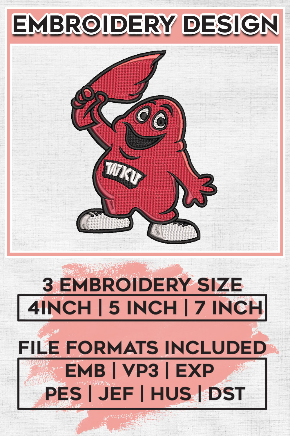 Ncaa Hilltoppers Mascot Embroidery Designs, NCAA Western Kentucky HilltoppersMachine Embroidery Designs, NCAA Logo embroidery designs, Ncaa WKU Hilltoppers Logo, Digital Download