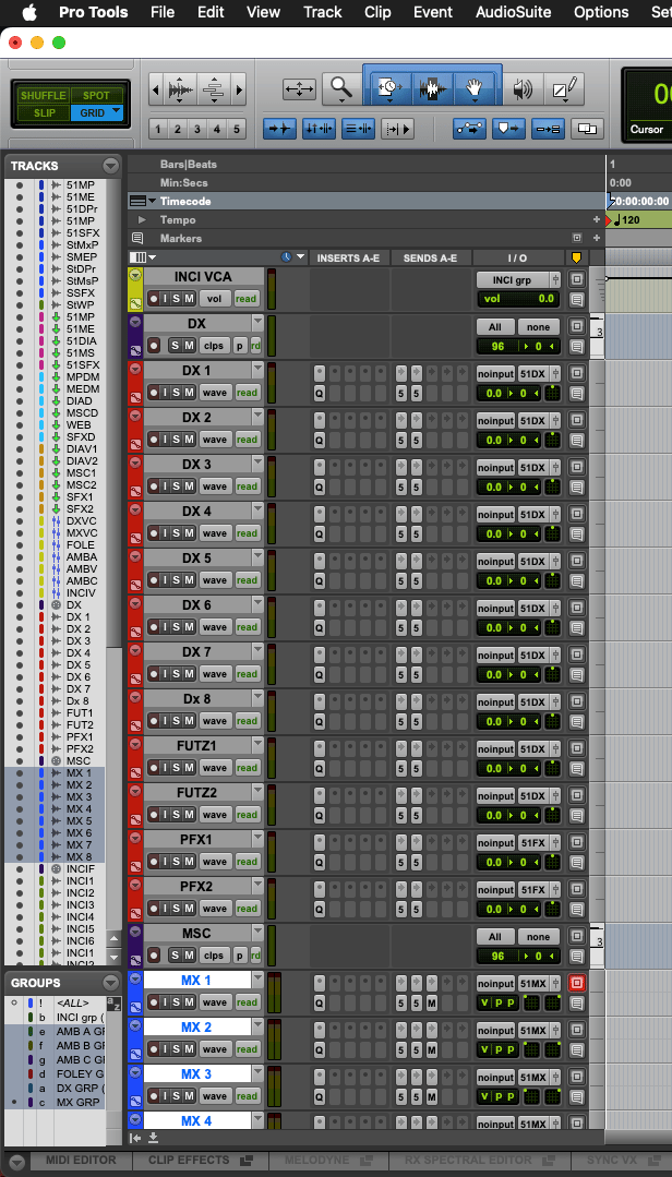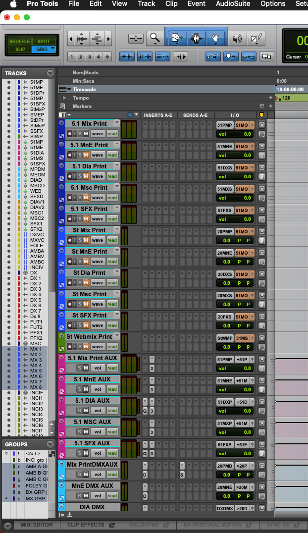 - Print master, DX, FX, MX, M&E print and stem routing
