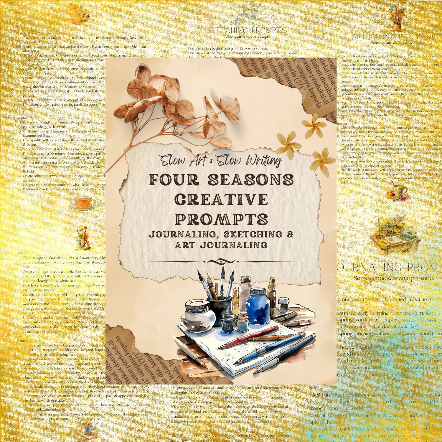I am passionate about journaling, sketching and art journaling. I am also passionate about seasonal creativity so I have put the two together. In this pdf file you will get creative prompts for your journaling, sketching and art journaling per season. Creating seasonally allows you to inhabit the seasons more deeply. Developing regular creative habits can be challenging so I hope this bundle supports you as you travel through the seasons. Pick the exercises that suit you and in an order that suits you. Enjoy your seasonal creativity.