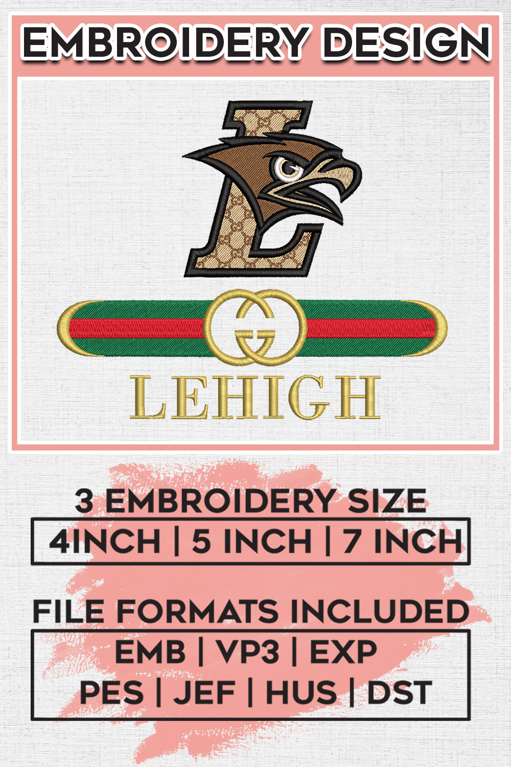 Gu.cci NCAA Lehigh Mountain Hawk Embroidery Designs, Lehigh Mountain College Football Team Embroidery Files, Game Day NCAA Football Machine Embroidery, 3 sizes, Machine Embroidery Digital Download