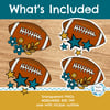 Large printable football team graphics in Jacksonville Jaguars colors teal and gold. Includes a flower design and a star design.